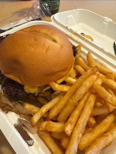 The smash burger was delicious, the fries were nice and crispy, and I think the price is reasonable for the quality. Great job here.