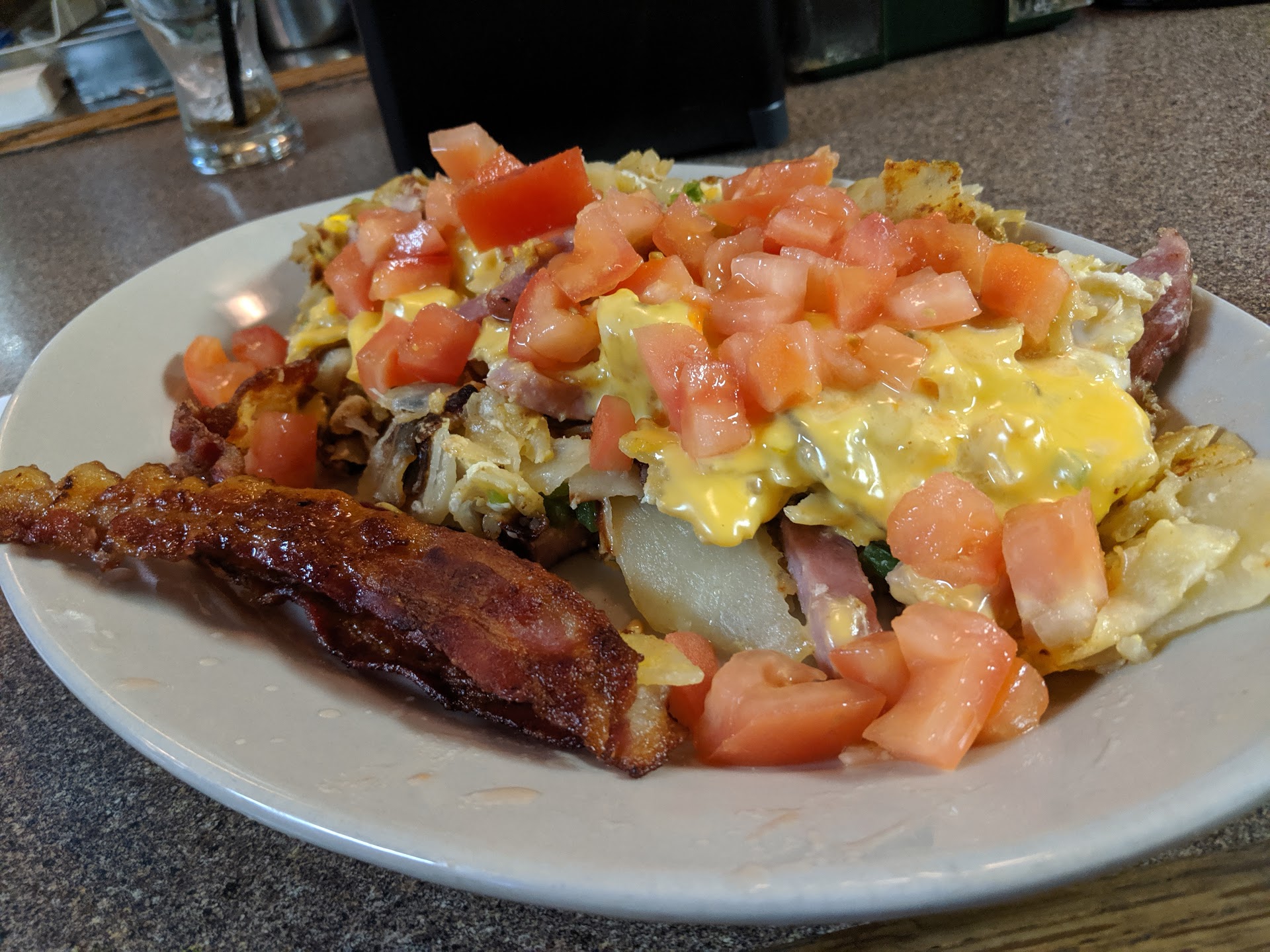 I'm gonna warn you, this is the most small-town Ohio dive bar you've ever been in. It's dark inside, they're playing 80's rock music at 9:30 on Sunday morning. The place kind of smells like cigarettes. If you don't want to eat breakfast in a bar, I would, idk, go find an IHOP or something. If you want REAL FOOD, this...