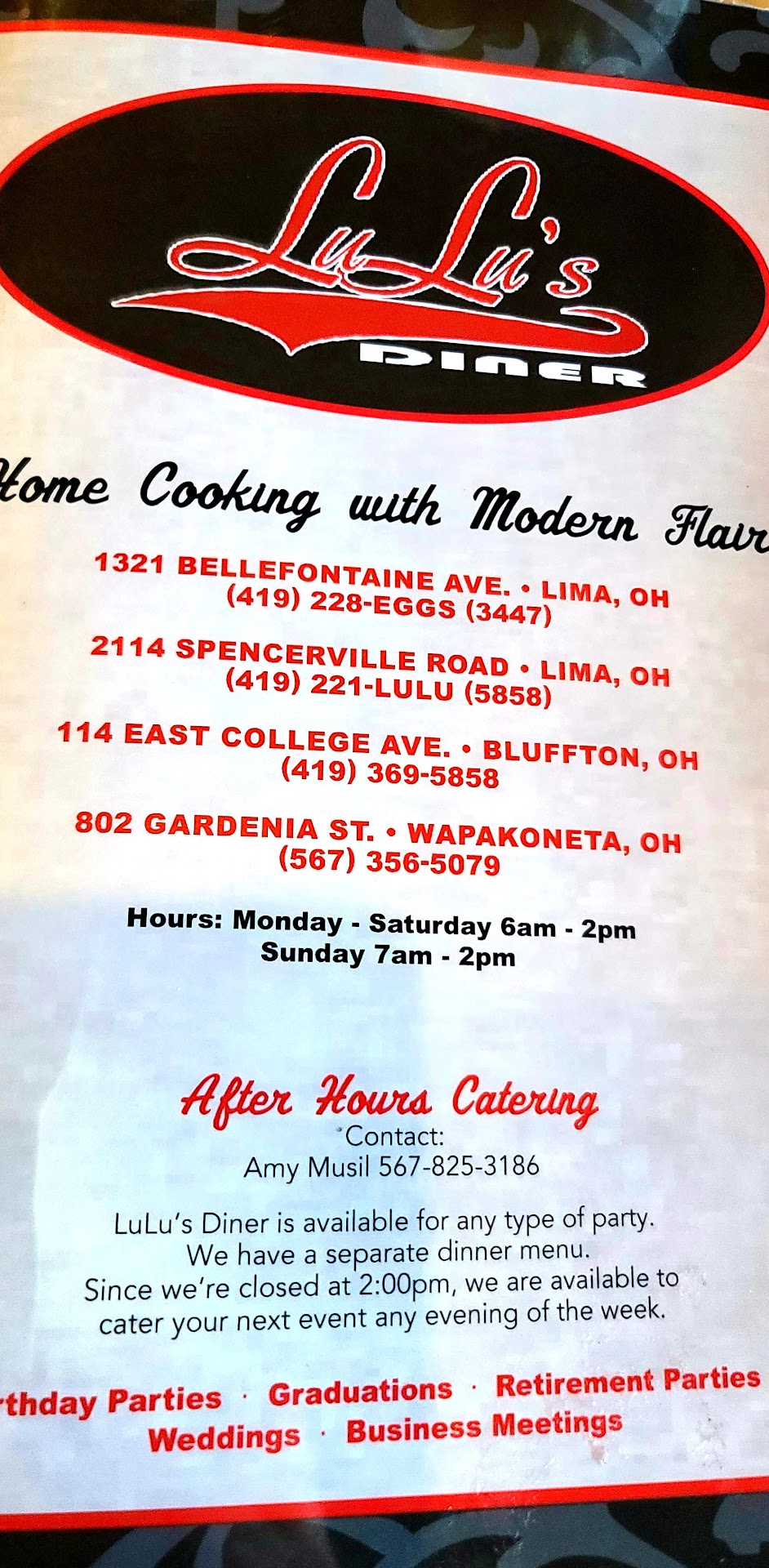 Itās sort the of unfair to say ārate Luluās.ā There are 5 locations, 4 in Allen county and 1 in Logan county. The one in Logan county is at Indian Lake and is the only one that is open all day, it becomes a bar at night; the rest close at 2pm. Letās start by saying they are all really good. They have a decent breakfast/lunch menu that will satisfy any age. There is plenty for those on Adkins or gluten-free. Meals are primarily $5-$15 and are filling. Again, rating them as a whole would be unfair because of staffing, parking, cleanliness, but I have been to them all and can easily rate them from 1-5, 1 being the best. So⦠1. Luluās at the Lake, best for staff, room, and parking 2. Luluās Wapakoneta, cleanest, nicest layout, most modern, and good parking 3. Luluās Bluffton, best food, good layout and great service 4. Luluās Bellfountaine Ave, good with a couple of great waitresses but when that are off, itās average. Parking is good but can be tough to get there n and out of 5. Luluās Sencerville Rd (the original) Itās tight and parking is the same, especially if itās full. Itās up and down but is by far the lowest rated of the 5. Mind you overall, I gave Luluās 5-stars as a while. So, there it is. If you stayed to the end,...