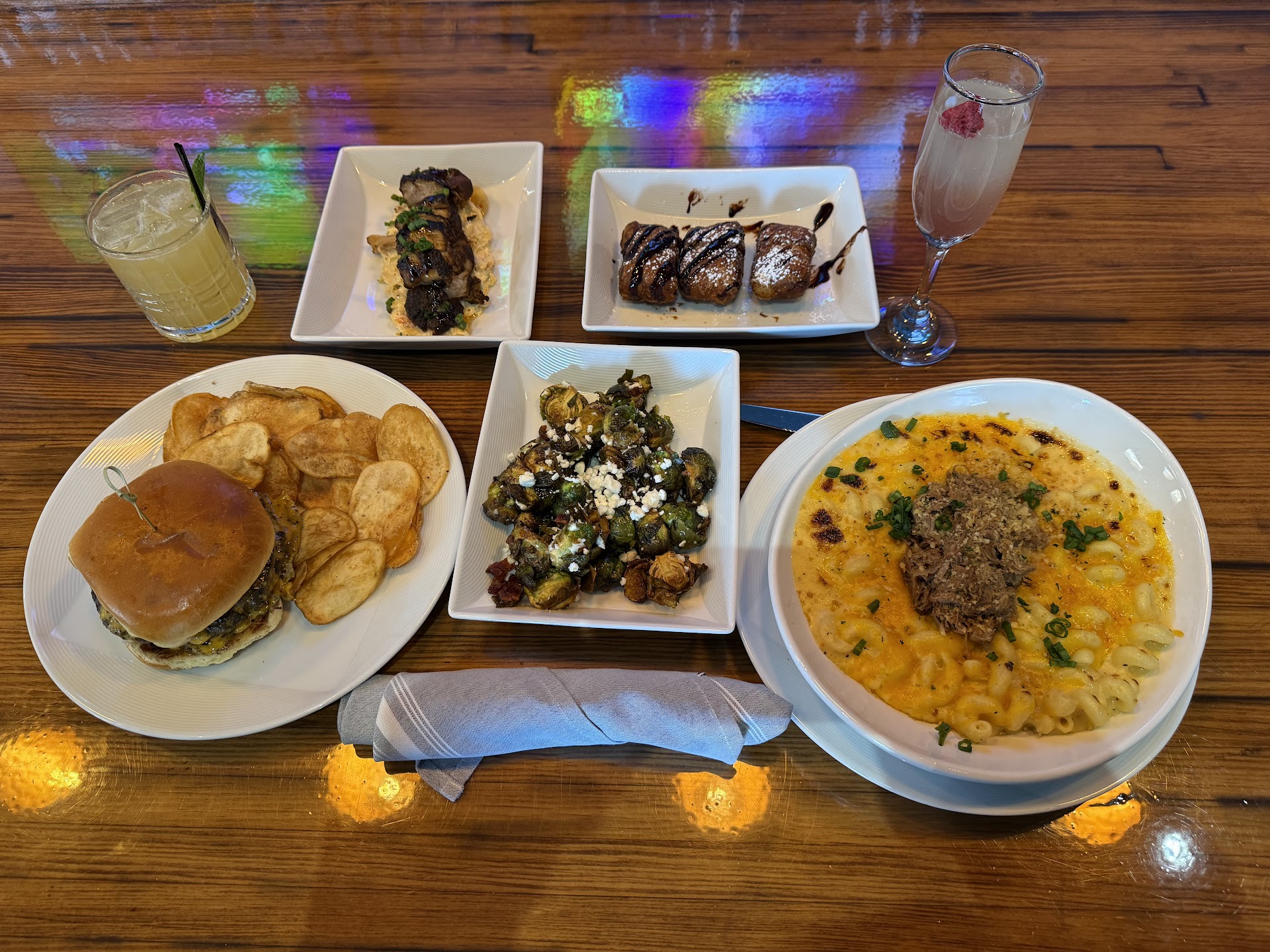 For food, we ordered the Smash Burger, Mac and Cheese, and a Chicken Sandwich with fries. Everything was amazing! The food was fresh, with each dish offering its own unique taste. The Smash Burger was incredibly flavorful, and the Chicken Sandwich was crispy and equally delicious.
