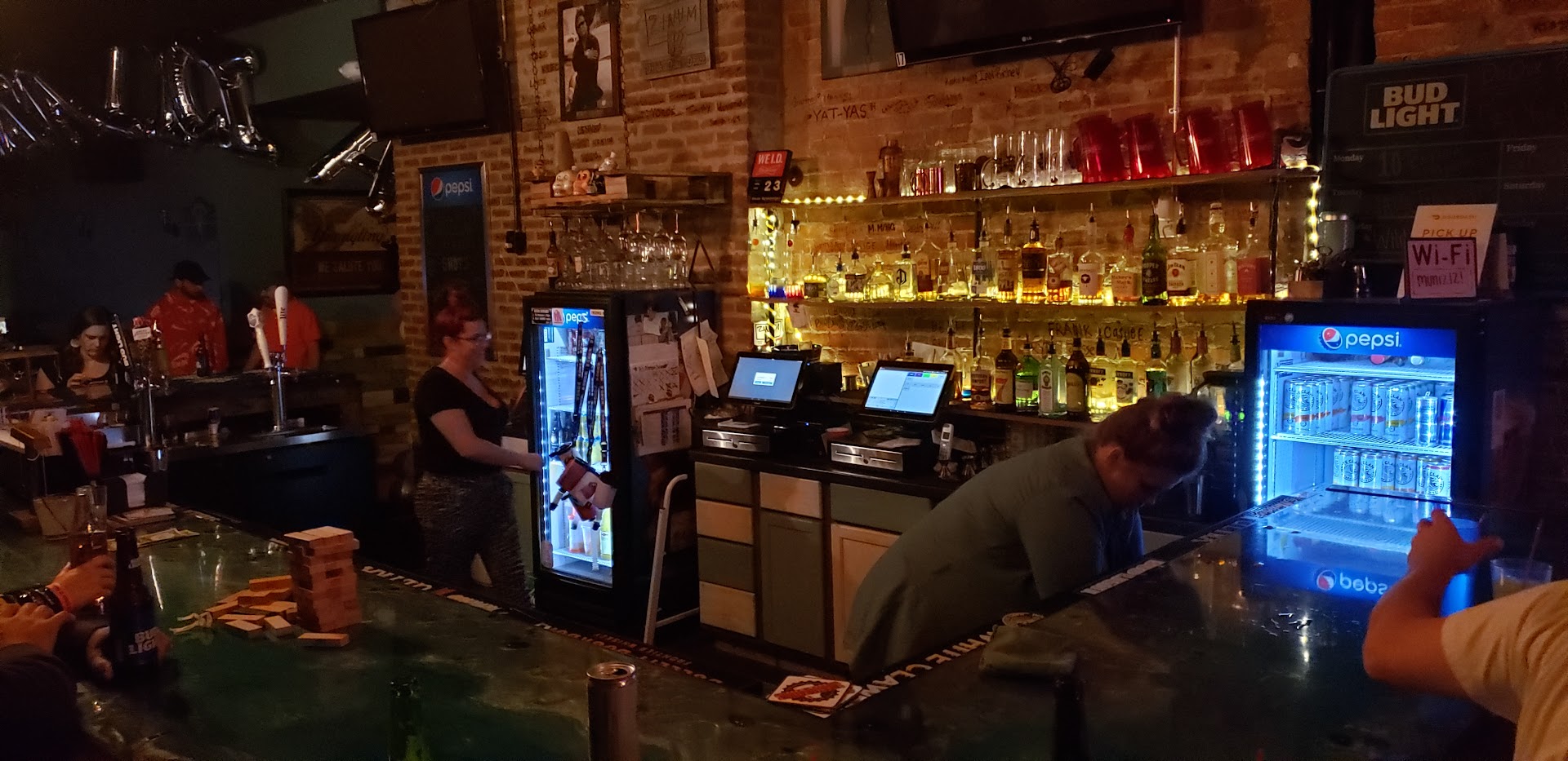 With a very rustic but modern decor, it's warm and inviting. The food really surprised me. With a full service kitchen, they offer a variety of foods to please any pallet. Every burger is hand-made fresh with quality ingredients and their very own recipes. It's definitely not the deep-fried / microwaved typical bar foods i was used to. It is very well worth the wait and money spent in my opinion. The bar is nice, clean, and offers a large variety of drinks. The staff was polite and engaging but not overbearing. Definitely not the "counting ever minute" type of employee's. Take a chance at the shot challenge, and see if you can add your name to the brick wall. And yes, their open for lunch, dinner, and they keep traditional bar hours. No last calls at 11pm. Bring your friends, come hungry, eat ,drink in a fun...