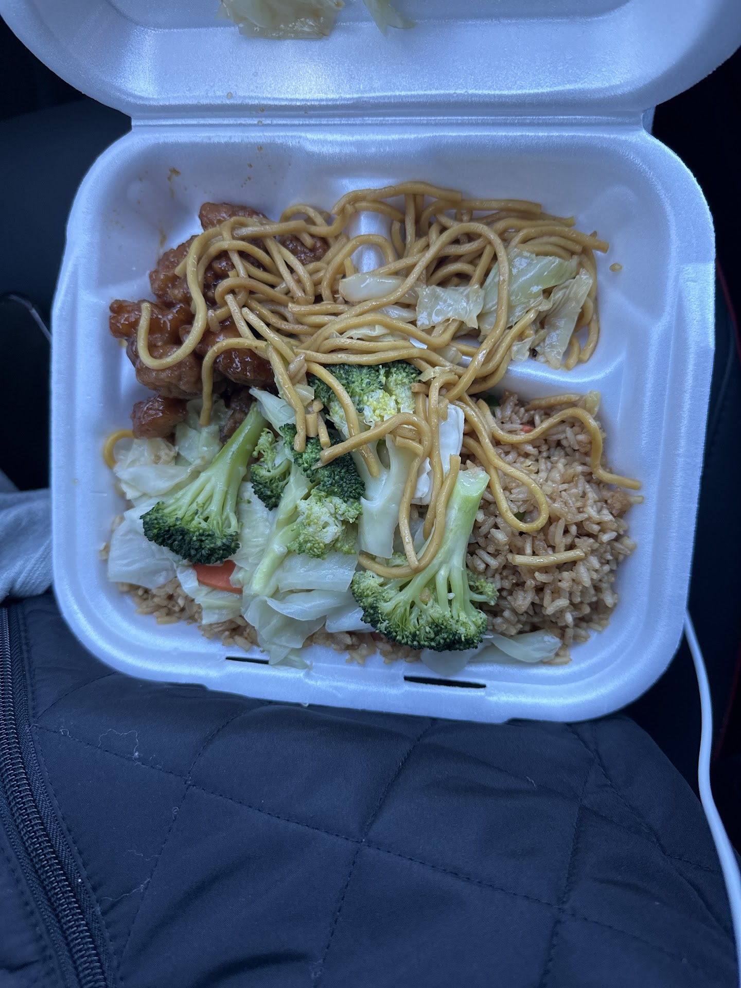 Unfortunately, they were totally out of lo mein when we got in the line. I was OK with fried rice only option. However, a customer behind me became very agitated when she arrived and found lo mein bin empty. She kept asking how soon it would be ready, and she huffed and left when she didn't get the answer she liked. I figured she must've been on a short lunch break. Go figure?!