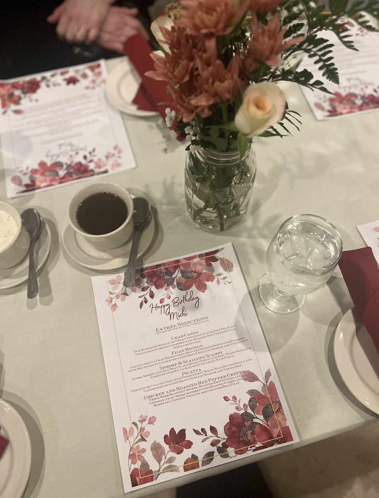 The Buffet Line: Whoever set up the buffet line in the manner in which it was needs to be retrained. I don't understand why the buffet line was separated into two different lines. Ie: fixings line and then the meat line. The area in the hallway was small and cramped. Everyone around me was complaining about the set up.