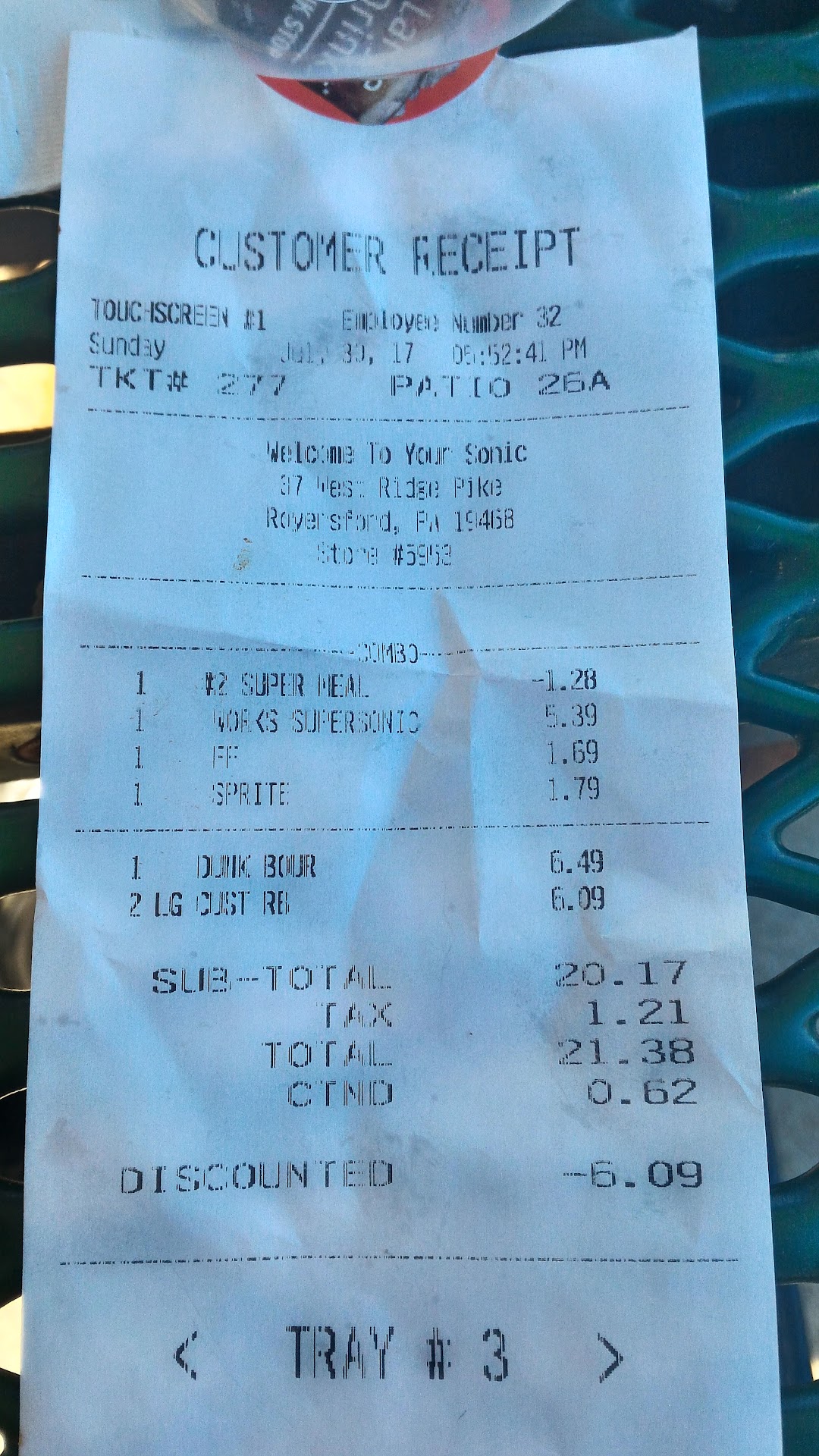 Ā Ā Ā Read moreI hadn't been to this sonic in around 5 years, because the last time I had been there, they screwed up my order 3 times in one visit (3rd time, I just got a refund and left). I figured enough time had passed that maybe service had changed. NOPE. Very first order, they got it wrong. Walked up to the service entrance and placed the food on the only horizontal surface there - a stack of high chairs. A friendly employee got the "manager" and she proceeded to tell me I had the incorrect receipt (it was the only one they gave me). I told her that it was all I got, and she disappeared inside. When she came out, she gave me a refund receipt, and asked me to throw away the old order (keep in mind, I had PROOF that they had bought the food back, and thus it was now THEIR problem). I gave her the dirtiest look, and she turned around and went back into the kitchen, even as I was asking her what her name was. Terrible customer...