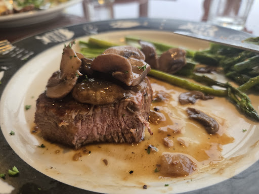 ย ย ย Read moreMy wife and I went here for dinner. Unfortunately, we did not make reservations or realize that reservations were available. We had already looked over the menu online, and she was excited for the chicken piccata, and I was excited for the prime rib. On a whim, we decided to ask at the bar if they severed food there as well. Boy howdy were we in for a treat when we found out that they did indeed serve the same menu at the bar. We bellied up and ordered our food and some drinks. I stepped outside for a cigarette while our food was being prepared and discovered a very warm and loving elderly cat that apparently has taken up residence at the hotel. I called my wife because she just HAD to come and give this cat some love. We spent a bit of time with that cat and perhaps too much because our food was delivered while we were busy with said cat.