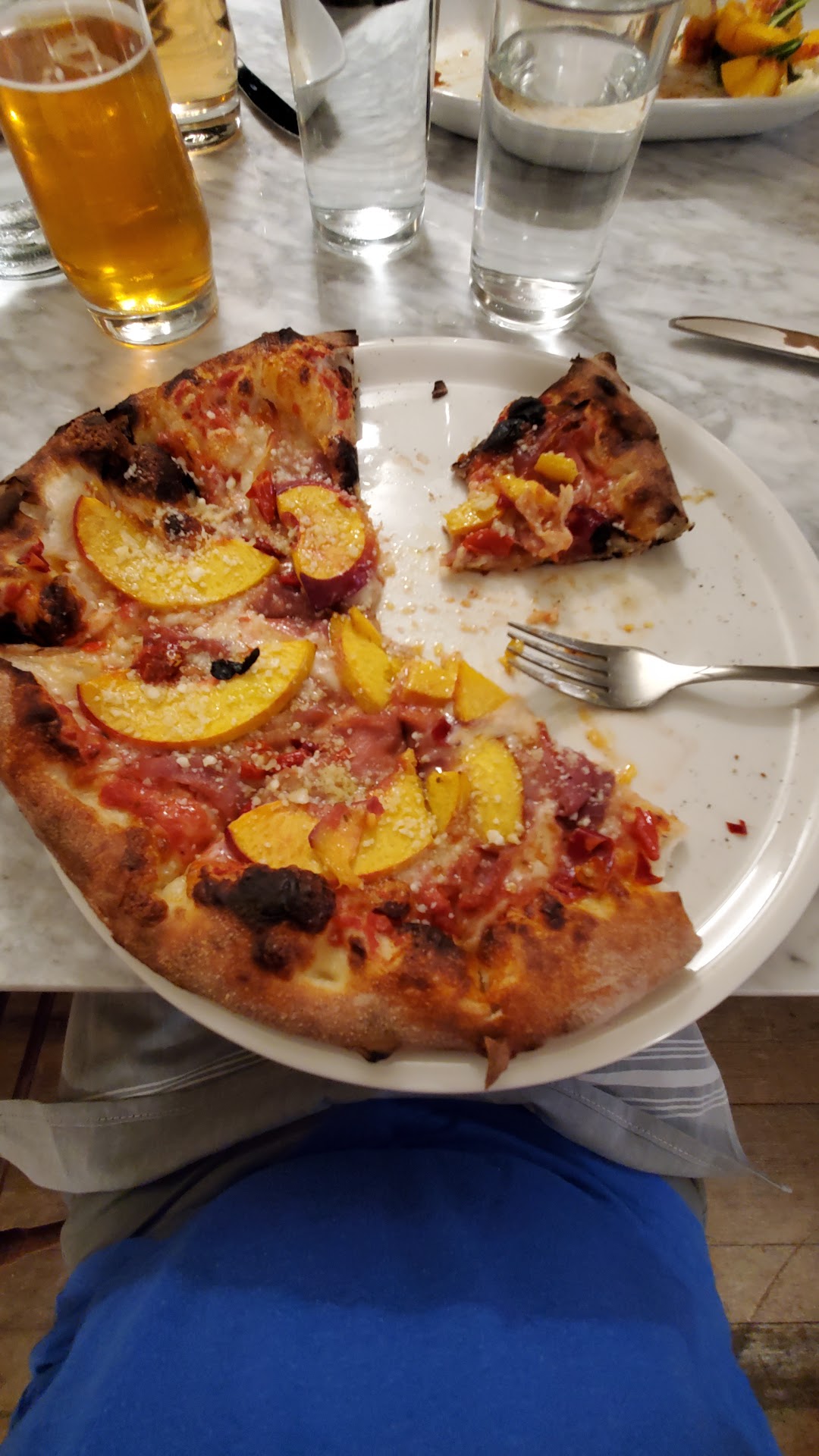 The pizza itself was super rich and thick and I believe we were only able to eat maybe one piece each. I think I remember eating two pieces and then being in a food coma. Now this is not a negative or a bashing it's just this is not your run-of-the-mill pizza it's very high quality ingredients and the dough is obviously freshly made. We were very happy with our food we just wish we were able to eat it all. We lugged pieces of pizza with us to our other lodgings and even after hammering away at it for a few days we weren't able to finish the whole pizza.