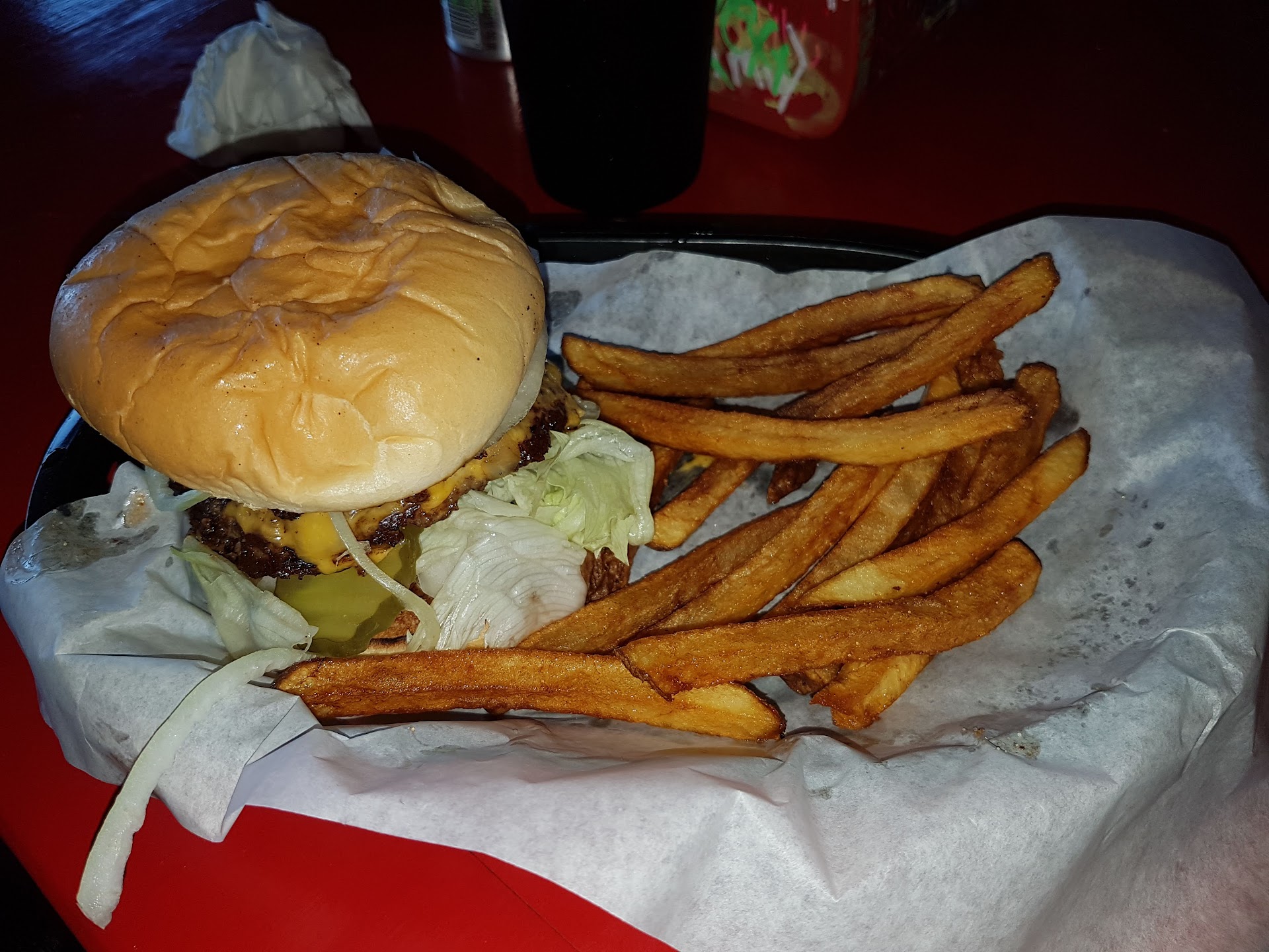 For a quick, fantastic Burger, that is a departure from anything you would get at McDonald's or Burger King, try this place. $10 gets you a cheeseburger, fries, at a Coke. For just a tiny bit more money you can have a double cheeseburger, and a triple. It's up to you. I think the owner's name is Vance, says he's been there for 15 years, and in my opinion has everything to...