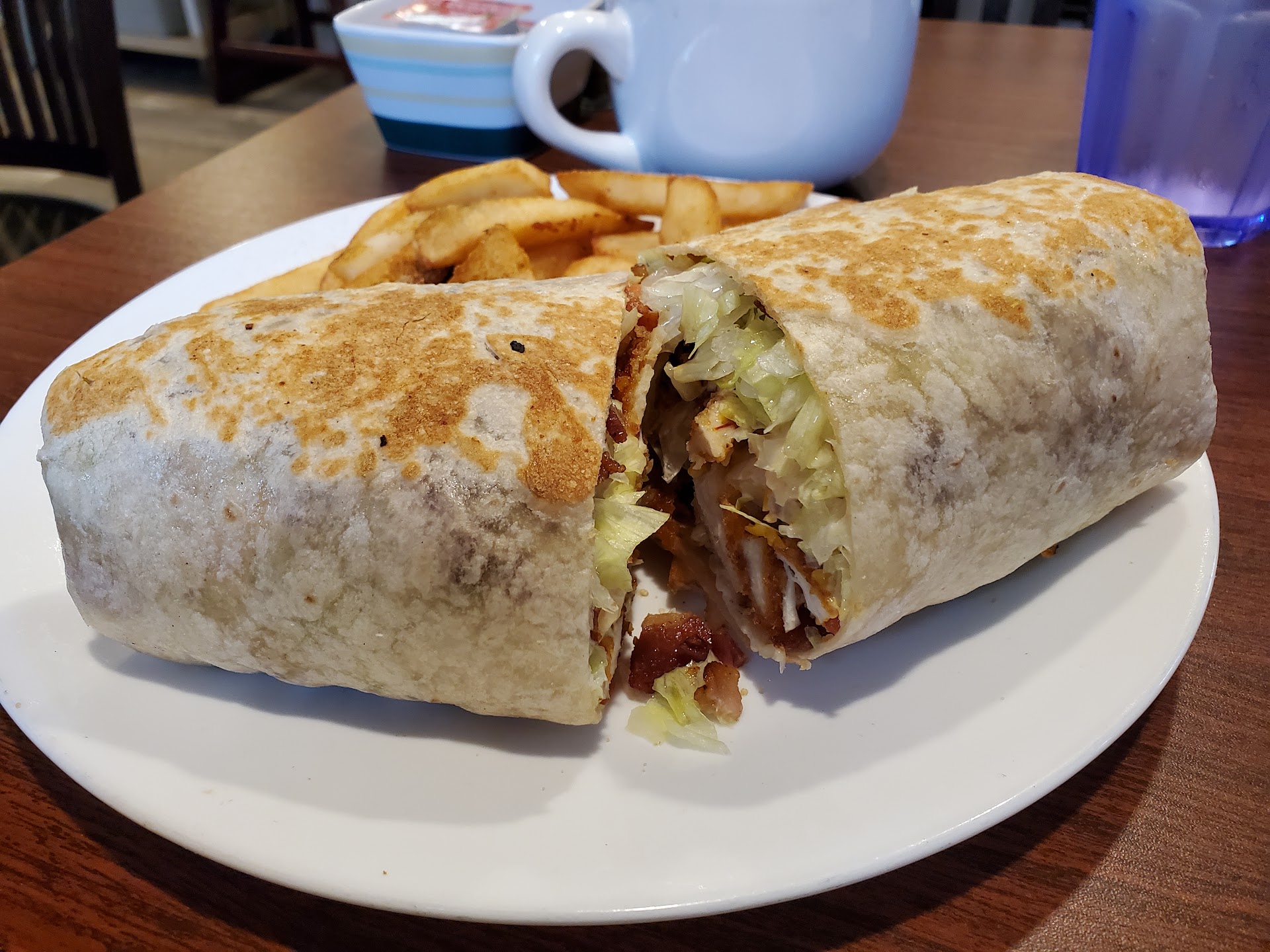 The next day was our last day in Lincoln City and my turn to pick a place. I picked a place a little farther south on 101. Had good ratings, but I guess I should've actually read them too. We had a horrible experience and left due to no service. Drove back up 101 to the Nelscott Breakfast House. Seated immediately and had our same server. We said "we're back"! And we had a GREAT breakfast!! Well this time I had lunch and had the chicken wrap & my husband had the House Favorite. So so good! Even tried the beignets because a friend of mine said they are a must and they did not disappoint!! Our waitress was the sweetest and even sent us on our way with...