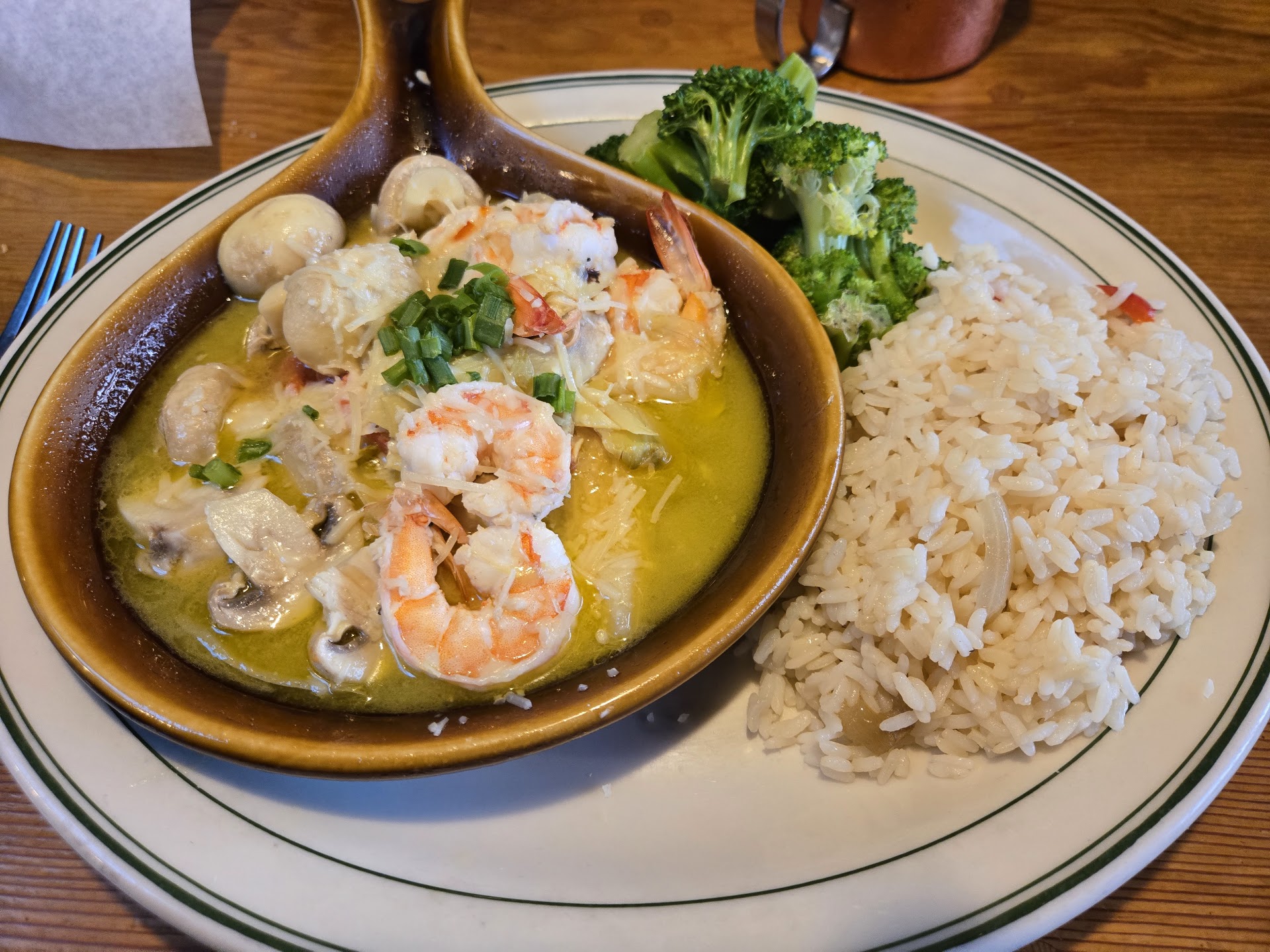 Read moreUpon entering the restaurant swarms of flies presented themselves as friendly regulars. We were sat at a booth at the far side of the restaurant in front of a window. The waiter promptly took our drink order. Immediately speaking harshly to the gentleman in the neighboring booth who had inquired about his shrimp salad being absent shrimp. The waiter rudely says "You didn't tell me you wanted shrimp, I can add it for an extra charge." The gentleman nicely asked for shrimp a second time. To which the waiter says "fine, you'll see the extra charge." He left the dining room and returned with the requested shrimp and the drinks, he then took our food order. Returning about 5 minutes later with a rather obvious size difference in the wilted Cesar Salads. There was a fruit fly mixed into the Honey Butter, and the Sourdough bread was three ways from wrong! It tasted like the starter had gone bad. Then our plates arrive. My sister's was a bit heavy on the pesto, but overall not terrible. However... my sauteed shrimp was not sauteed and served in a sauce, it was boiled and served in a soup, the broccoli was MOLDED, and the rice pilaf was the worst thing I have ever tasted in my life. The waiter NEVER came to check on us. Never brought or offered water. Instead comes and tries to give us the bill. I abruptly went into telling him what was wrong with plate. He said "You need to speak to the manager", did an about face and disappeared. I was so put off that I told my sister to go start the car and to take her money off the table. I was pissed. But then this older woman emerges, and says " I think I'm supposed to speak to you". Disarming me rather slightly. I proceeded to nicely explain what was wrong with this picture. Just when I thought she was going to pick up my plate, she dug her fingers into my rice and put what she had retrieved into her mouth and began chewing! In utter amazement, we sat there with a brief loss of words as we watched this poor woman try to chew this gross rice! Her chewing slowed, and her face went blank and she says "oh that's bad, that's dry, I will have this removed from your bill". Still baffled that this woman just dug her fingers into my plate, I was still at a loss for words. Then she kindly asks if we would like a complimentary dessert. To which the mortified sister of mine quickly replies "no thank you". As the woman is walking away from the table she spits the mouthful of rice back into the plates. She comes back with the checks and asks if there is anything else she can help us with at which time my sister says "you may wanna try that bread, something is seriously wrong with it", to which the lady replies "I'm gonna be full by the time...