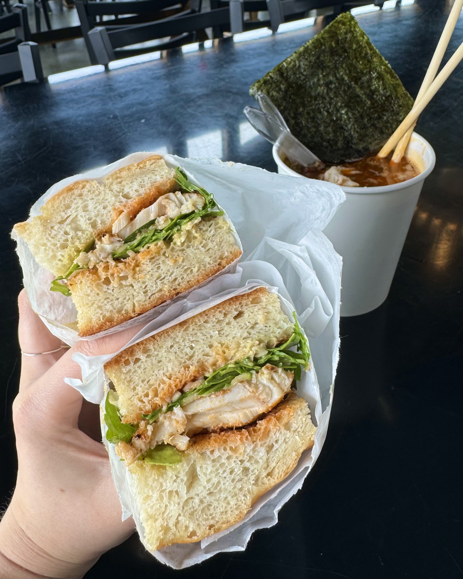 I ordered the pork belly po boy, and it was a memorable experience. The bread was thick but light and easy to compress so as to take a big 'ol bite out of it. And there was a good amount of pork Belly which was so good.