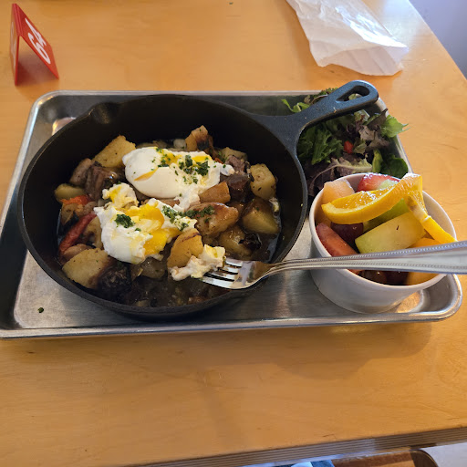 Read moreHey this was an impromptu 10 year anniversary adventure for us today. We flew in to local airport, first time, walked about 20 minutes to this charming brunch cafe after discovering a closer restaurant held dinner hours only. The red roof is a very positive, upbeat space, the owner was first face to greet and serve coffee to us. The menu offered vegan and veggie options (in a vegetarian) and a total WIN for us! The chef visited all the occupied tables to see how our entres were, very personable touch! On a Wednesday, they were comfortably busy... Well from my seat as a customer it appears as comfortable pace. Definitely returning to this...
