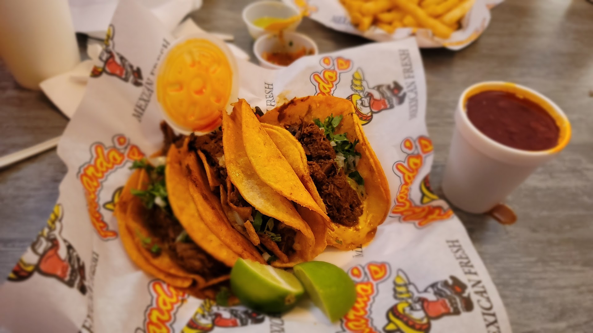Read moreWell this restaurant is absolutely perfectly fine for the food and really for the service. The atmosphere is a little bit lacking, but doesn't matter because it makes up for it with its you know playful banter from the people that work there and fairly authentic Mexican food. I mean the nachos are a little weird and the super fries are a little crazy. But what they have are fried flower, shell, tortillas, tacos and those things are the shit, plus you know where else can you go and have authentic Mexican food and you know in a total American atmosphere. It's fast food all the way but the food isn't greasy. The food is delicious and it's plentiful. It seems like it's going to be expensive until they put down 3 lb of food in...