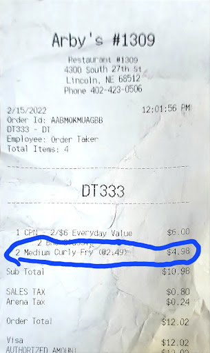 Read moreDec. 2022 update-unsure if it's actually a thing but last time I drove thru the bill for a French dip meal + extra sandwich + 2 cookies the bill was over $20.00, so be aware that when I say a bit pricey, I'm not kidding. That being said, the French dip and fries are still good. And both fries and sandwich were adequate. Also appreciate the dining room being open, I get tired of driving thru all the time. That being said the decor is meh, modern fast food restaurants like McDonald's have really raised the bar here and post-covid a nice atmosphere for the dine-in experience is important.