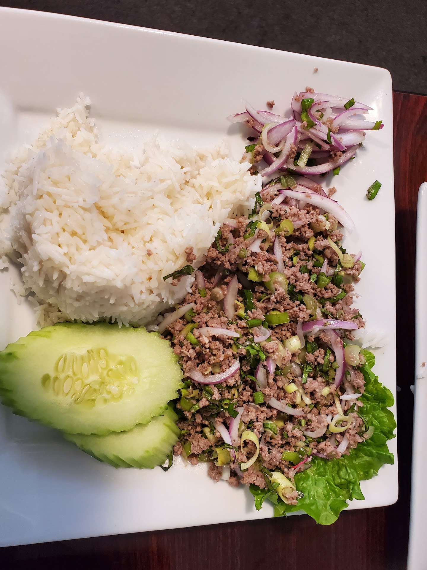 I'll start with saying the waitress was very nice and the sexy roll sushi was excellent. The rest of the visit, though, left much to be desired. Most of the issues were due to a language barrier. We both ordered iced teas and asked for artificial sweetener as my husband is diabetic. I was brought a sugary iced coffee and he was brought unsweet tea(as ordered). She thought mine was simply sweet iced tea. When I pulled an equal packet out of my purse to show her what I meant by fake sugar/artificial sweetner, she was able to tell me they don't have any. She brought me a glass of regular tea the next time she came out. We ordered Beef Larb and chicken Pad Thai. We were brought two dishes of Pad Thai. She took the extra Pad Thai back and confirmed with pointing to the menu what else we were trying to order. Pad Thai was okay, but nothing to get excited about. Beef larb comes out and it is pretty much nothing but red onion. Even for my husband, who likes onion, it was excessive. (The menu lists it as green onion and shows nothing about red onion ..The green onion is what I've gotten everywhere else when I've ordered the same.) I pointed it out to the waitress and we looked at the menu together to confirm. By this point I had given up on the food, and ordered the mango sticky rice dessert. It was extremely bland. The coconut milk wasn't sweetened at all and there were no additional seasonings (some places add cinnamon.) When made properly, that dessert is phenomenal, so I was very disappointed. The waitress brought out the Pad Thai (that was made by mistake) in a box for us to take home to try to apologize for all the mistakes. She tried, and I appreciated that she was nice, but we were incredibly disappointed with the experience. We will be trying another one of the highly rated Lao Thai restaurants next time we are in Lincoln. This one has been removed...