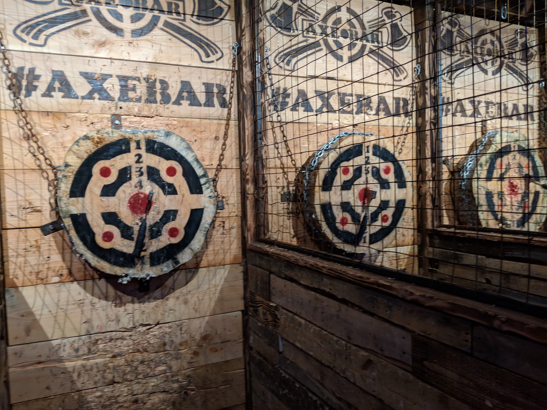 Read moreThis place is a lot of fun. I have been a couple of times now, each time I've gone I have had a different staff member. Go through the instructions and how to throw axes. They really set the tone for how your night is going to go. Overall I would say I have not had a bad experience there and I love how all the different activities are can easily connected so that you can kind of run around like a big kid. The only reason why I'm getting it four stars is because they only have one option for food and it's very hit or miss. Incredibly overpriced but that's it. So, I would say definitely fill up on snacks...