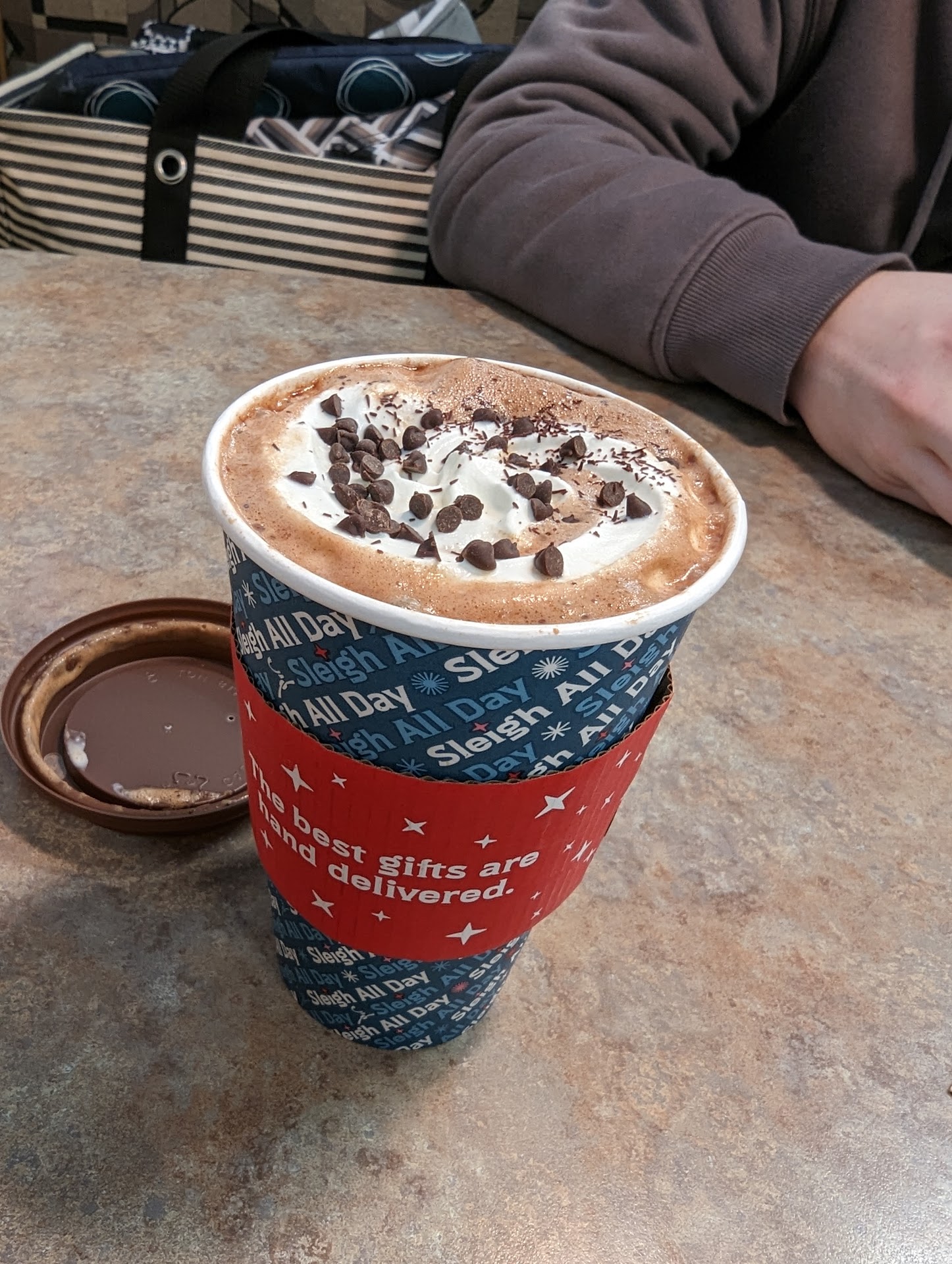 Read moreWhat wonderful service, resulting in a super tasty dark chocolate hot cocoa with roasted marshmallow flavor (yum!) for me and turtle mocha for my mother in law that she raved about with every sip. Thank you to the manager and trainee who made...
