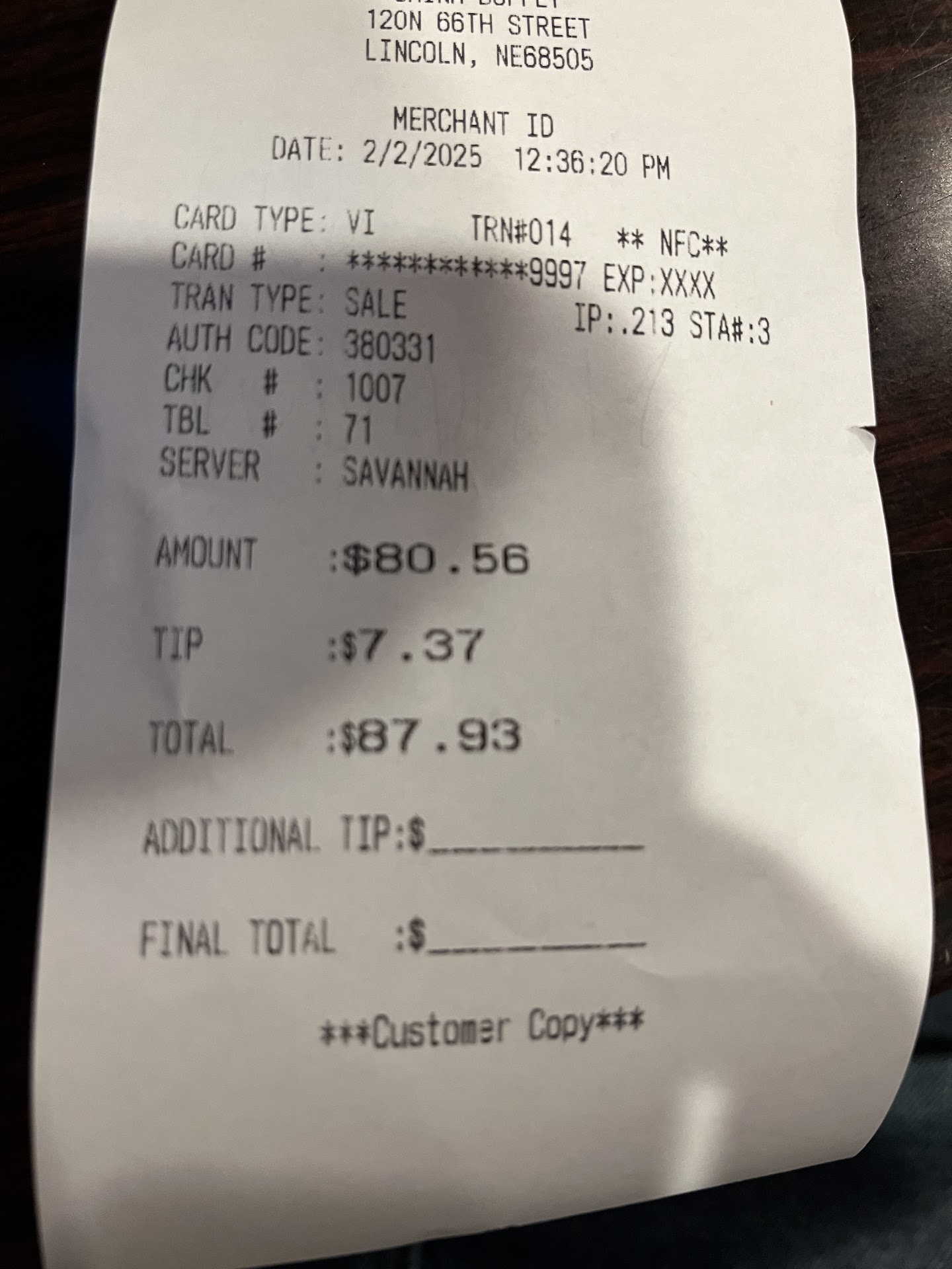 I just got done talking to the cancer doctor. My husband who suffered on and off since 2019 was dying. The doctor told me there was nothing more they could do. So, my parents took me to this restaurant to try to lift my spirits.