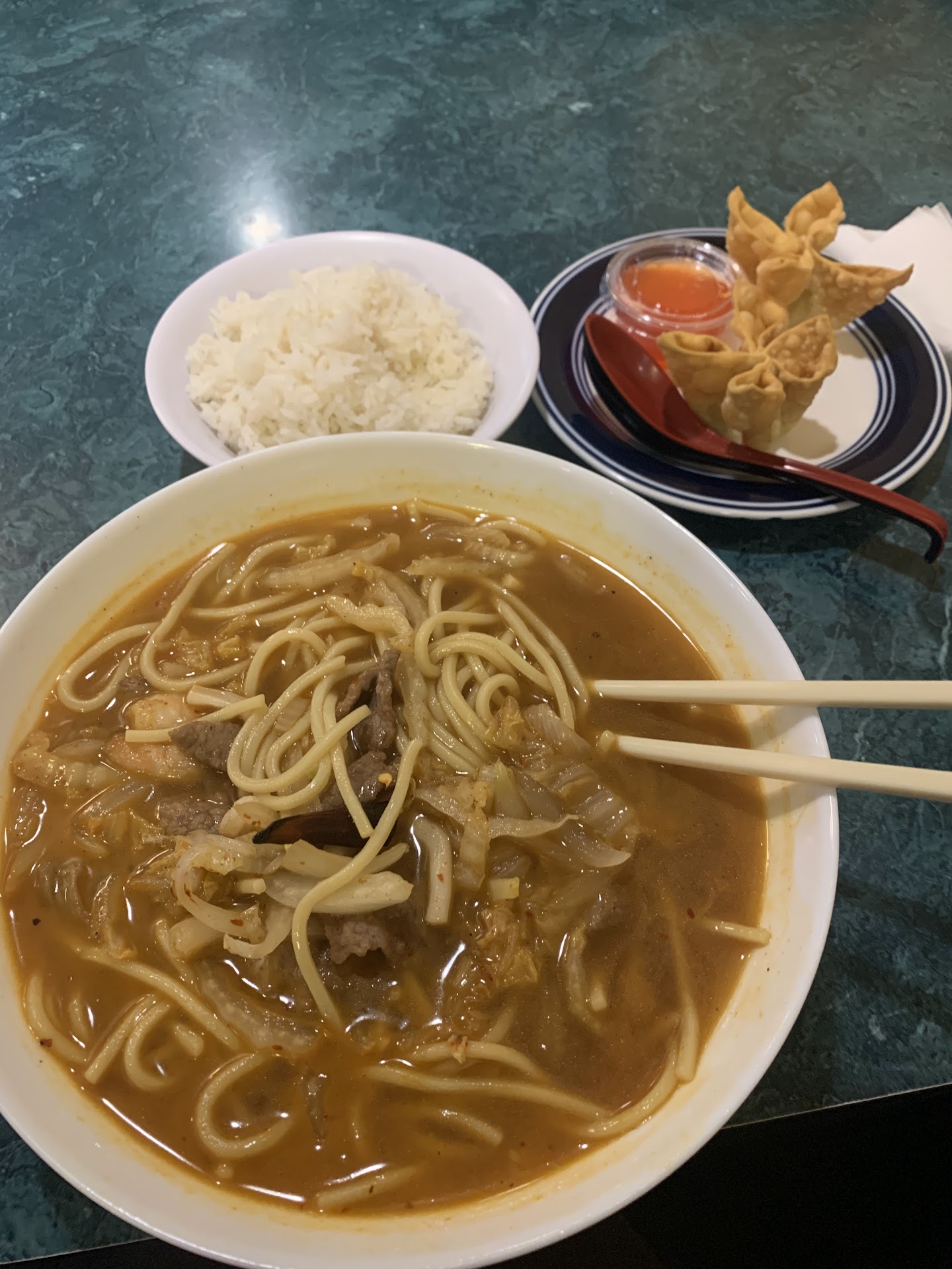 They have a tasty seafood dish called Wanza, which is fish, shrimp and scallops is a red sauce that I have only seen at the china inn.