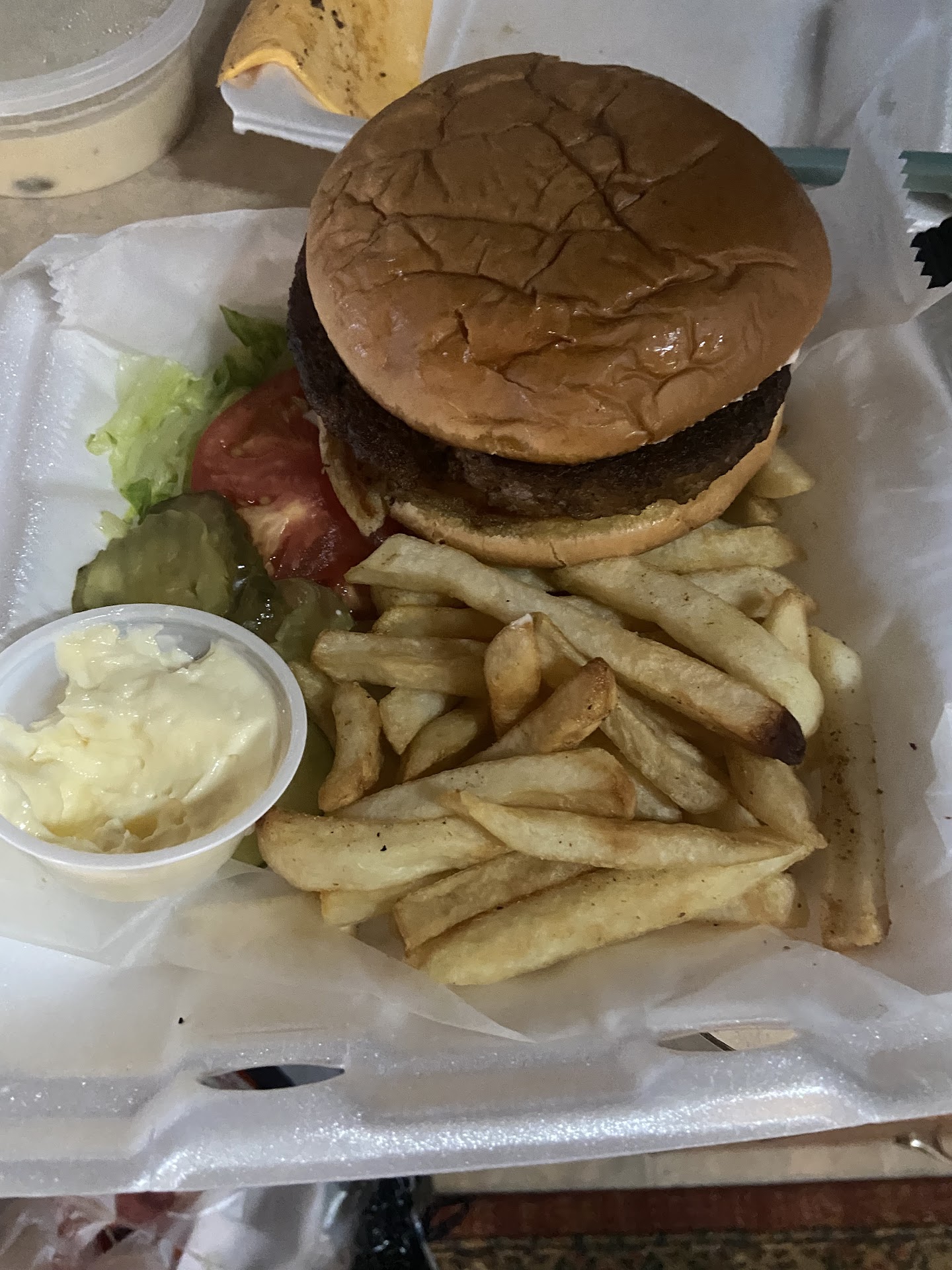 Read moreShort guy bartender with glasses, took my order, I’ve repeated it to him twice to make sure he had my order right. He gave me the receipt to pay and I didn’t see the extra fries I have ordered. I asked him about it and he said yes is in the order. Nope it wasn’t, when I got home no extra fries. Plus he took the receipt back and I thought he added it on my order on the bag. Receipt was $52.53 I gave him $60 & he gave me back $6 plus he included 10% gratitude for him? WTH, I always give tips based on service not because I’ve been forced. Burger was so cold and looked like they had it from a returned dish or something, was broken in half. Same cold food with the rest of my order. I had to heat it up at home. No cheese on the burger even though I have paid for it. I had to add cheese at home.