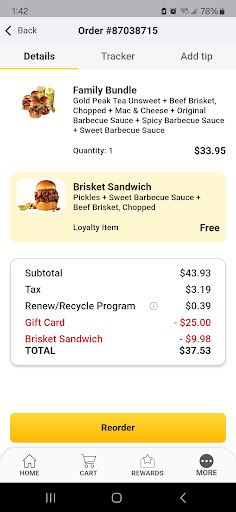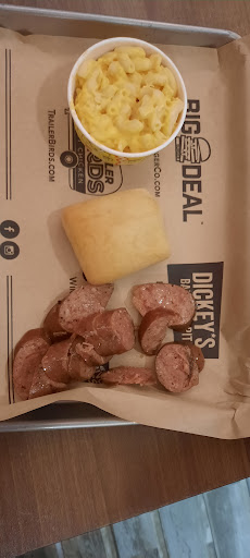 Read moreLabor day at 7pm 2022. Walked into dickeys and the lady at the register yelled welcome while bagging up someone's order. When it was my turn to order the two guys behind the counter and the lady at the register were as kind as they could be. I ordered 1 lb brisket burnt ends, 6 bones and a half lb cheddar sausage. Got to watch them cut it and I could tell that it was going to be good. The lady has worked all day since open and she was still in high spirits. They all were. It was a great atmosphere for them working a holiday. I felt very unburdend by them. A lot of times on holidays staff will have a little attitude like they don't want to be there. Not these three. Very happy when I left, however, the best part was when I got home. Holy BBQ I was blown away! The food taste as good as candy! Every single bite melted like butter and it didn't even need BBQ sauce. Pretty impressed by Dickeys today...enough that I felt compelled to leave this review. I haven't had BBQ that good in a long time. I feel like a king!! Thank you guys for killing it on labor day and now I'm going to sit on the couch for the night happy as can be!!! Till...