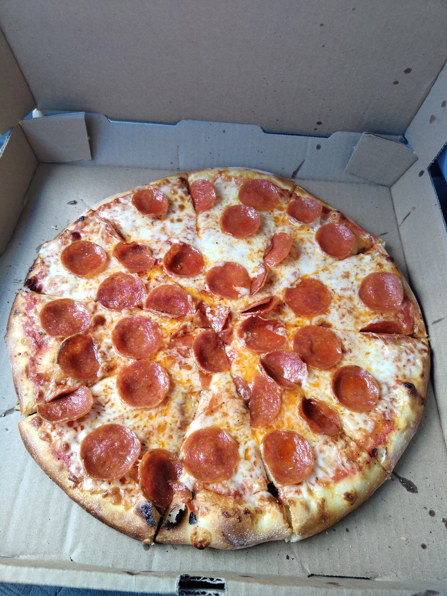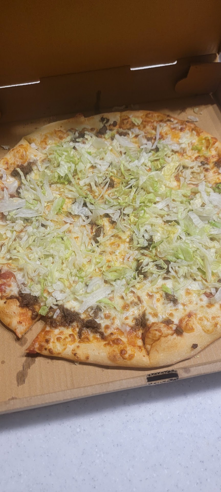 Ā Ā Ā Read moreThis guy who owns it is so courteous, he's very professional, and he seemed to know all of his costumers personally. I was expecting a semi frozen type pizza deal until I put it in my car and the strong aroma of pepperoni juice and mozzarella cheese permeated the air . The sauce is tasty , it was loaded with meat , and even after he had cut it into slices , the piles of cheese had obscured the cuts . It was a really nice pie. The only downside is that I drive 30 miles to get it and wish that he had...