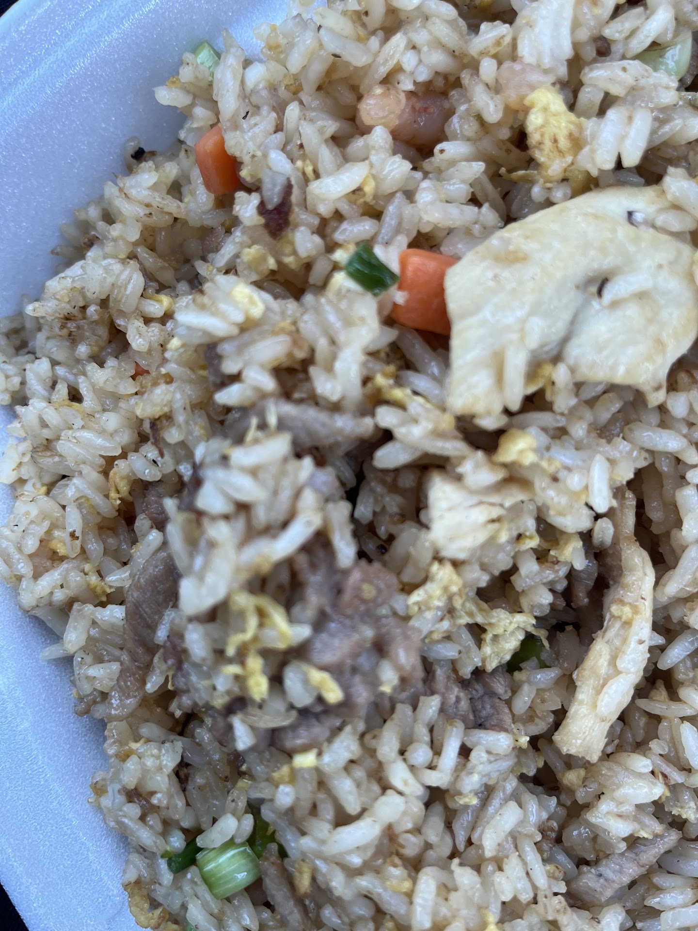 I like starting with the egg drop soup, and usually get crab rangoon or the pot stickers for an appetizer. My usual standby for my entree is egg fried rice, but I've tried a handful of the chicken dishes, like the sweet and sour, and while sometimes the pieces of chicken can be a little gristly, overall it's tasty. They give you a full plate of food, and most of the time I take home leftovers for the next day's lunch. The sizzling rice soup comes in a bigger portion by default, so if you feel like sharing something delicious (or want this as your meal), this is a great and tasty option.
