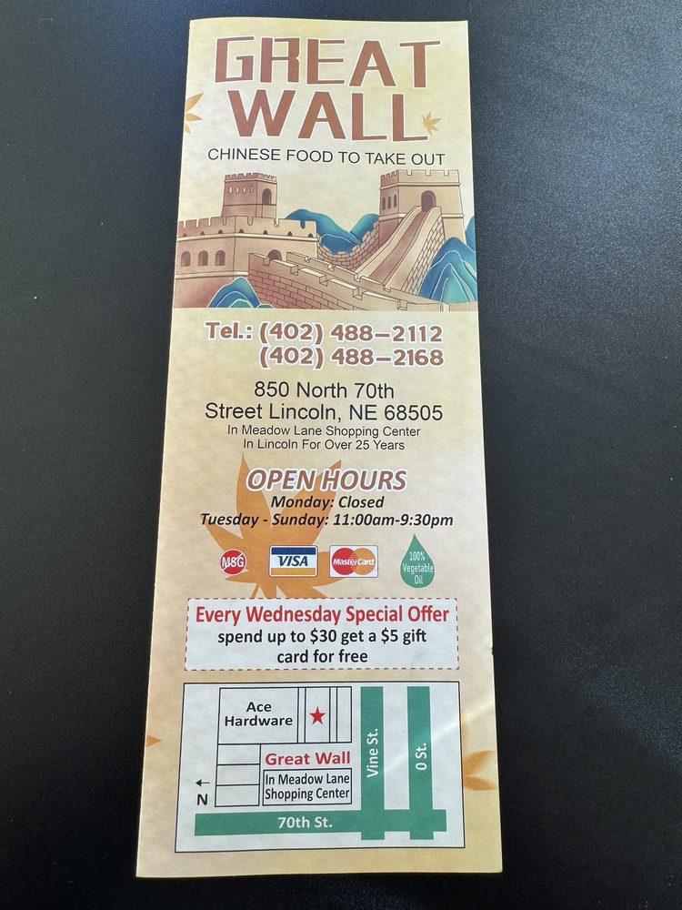Read moreI have known about this Chinese food restaurant since 1999. Since then, the owners have changed several times. The name of this business has been Great Wall most of the years it has been open. The appearance remained largely the same until recently. Great Wall got a remodel under the newest owners, and wow it looks so different. Great Wall looks modern and cleaner. They used to have a small TV toward the corner of the ceiling that was usually tuned to a TV station. The TV was removed.