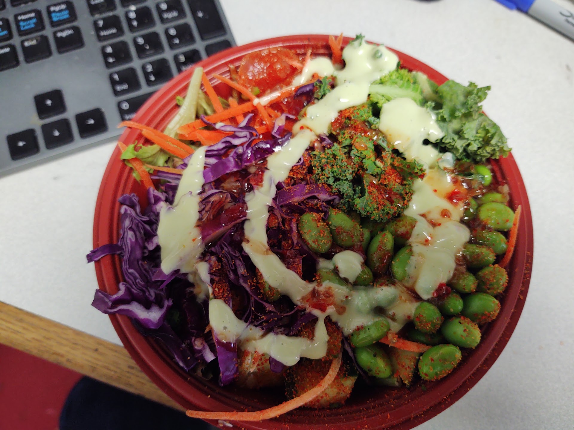 Update: I really love their poke bowls with mixed greens. I don't eat rice. For the past two nights, they have been out of mixed greens. I asked for kale to replace the mixed greens. They were out of kale. Most times they are also out of edamame. I asked when mixed greens would be back. I was told in one or two weeks. Who sources food for this restaurant?? I can go to Hyvee and pick up mixed greens for them. Why have menu items and not be vigilant about stocking them??