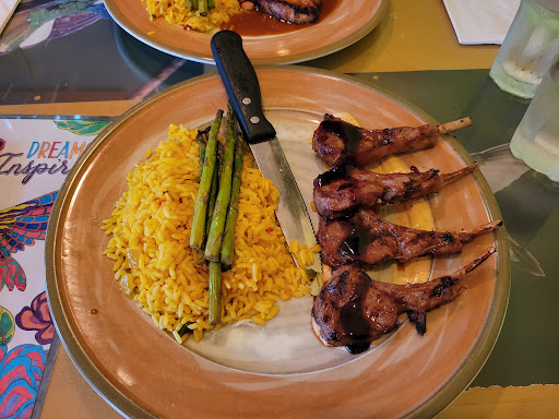 Food variety was not bad. I came here with the fam to try something new for food... but it was actually difficult to do that. Their menu on their website is pretty old; the menu now doesn't include the Australian spring lamb, the Ethiopian sirloin, the Thai red curry duck, or the Navajo pumpkin pasta... all of which I would jump at just to try. A lot of it is stuff you can get at other places: some Asian, some Mexican, some American. Go figure, a lot of the vegan-friendly stuff was more expensive than everything else.
