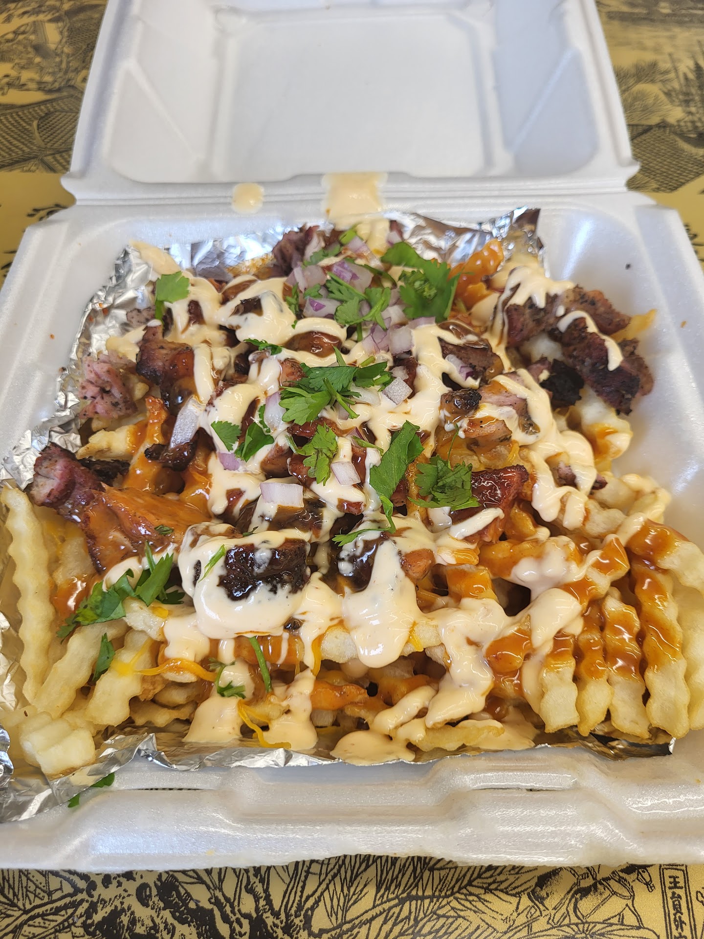 Read moreHad the korean bbq fries with beef, and without onion or cilantro -it was absolutely amazing! Don't do it without the white sauce because the red/brown sauce tastes exactly like cough syrup.