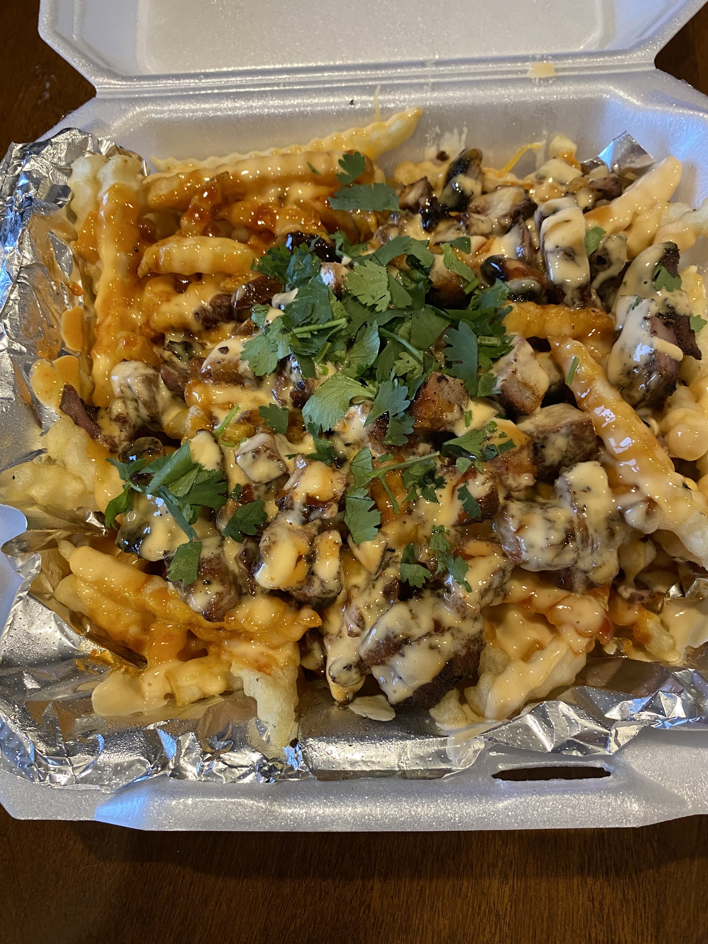 Read moreThis is our first carry-out from the South store and it was 100% amazing! We ordered the Korean Fries with pork (no onions), a Beef burrito & Fire Cracker Rangoon. We devoured the Rangoon and could only eat half of the Korean Fries & Burrito. The pork had a smoky flavor and was super tender. The beef in the burrito was equally amazing. The sauces on both were bursting with flavor. I took a picture of the burrito with a pen front of it because it was gargantuan! We have left overs for tomorrow too. The worst part is trying to figure out how to re-heat the fries without losing any sauce! We spent $27 total and are getting 4 meals out of it. We’ll be back again to try more items...