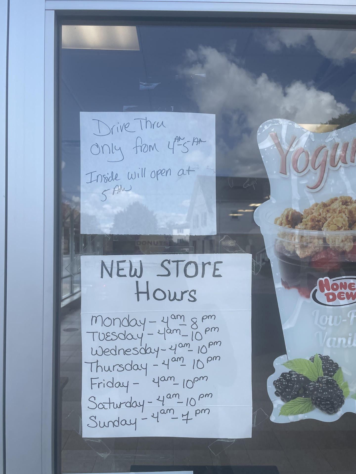 Read moreWhy is there a review of someone complaining about the front being closed. In case you guys didn't know, there’s staffing shortages. It’s hard to keep both a drive through and inside of a store running when 1-2 people are working. You should be happy honey dew has persevered through the pandemic and that they can still offer their business. Also why do you need to go inside so bad at 5 in the morning? It’s not even full hours that the inside is closed. Employees don’t just decide to close the front I wanna see people try to work when there’s 5 people in store and at the drive through and you’re alone. So be more kind to food service employees instead of complaining on a...