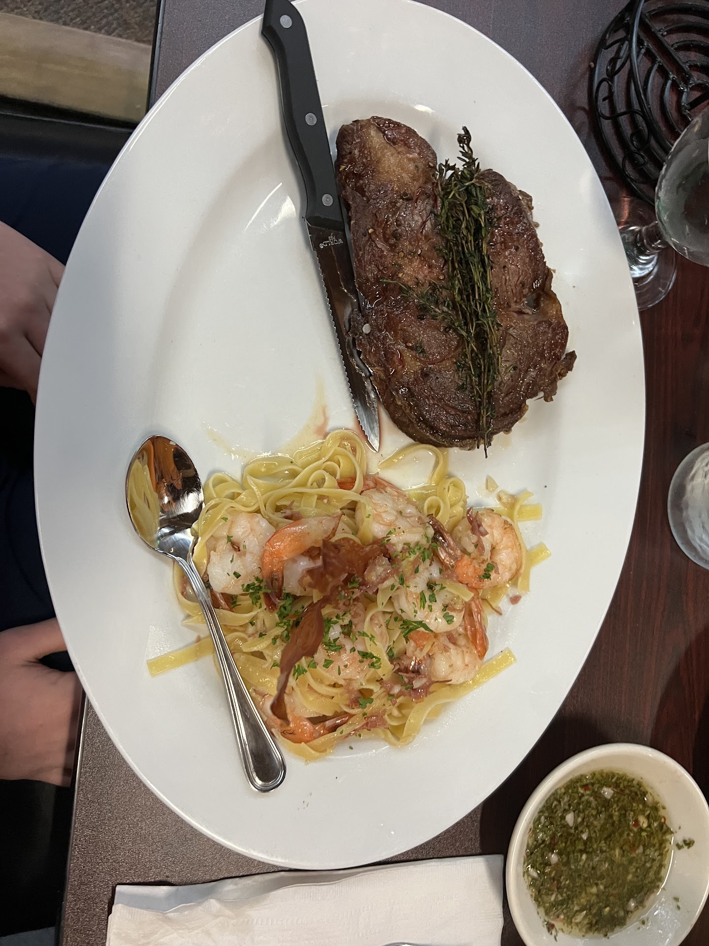 Read moreHidden gem in the White Mountains! We are repeat customers and have dinner every time we are in the area. Each time has been outstanding. On our most recent visit with our adult children we ordered the limoncello spritzers, burrata cheese appetizer and grilled shrimp appetizer, the land and sea ( rib eye, grilled shrimp and pasta), pesto penne, big family style salad and a nice bottle of Chianti. All of the entrees were cooked to perfection and served piping hot. On our last visit, we ordered the lobster ravioli which was also delicious. It is run like a small family business and you feel like you are the staffs number one priority. It is located in the center of Lincoln but on second floor of a mall so you have to look for it. Make sure to go hungry as the portions are very generous. Here are a few pictures. One is the Land and Sea as stated on menu and the other is the Land and Sea with broccoli substitution for pasta. The other pictures are Chicken Broccoli Ziti and Chicken, Artichokes, Shrimp - no pasta ( Broccoli was substituted but...