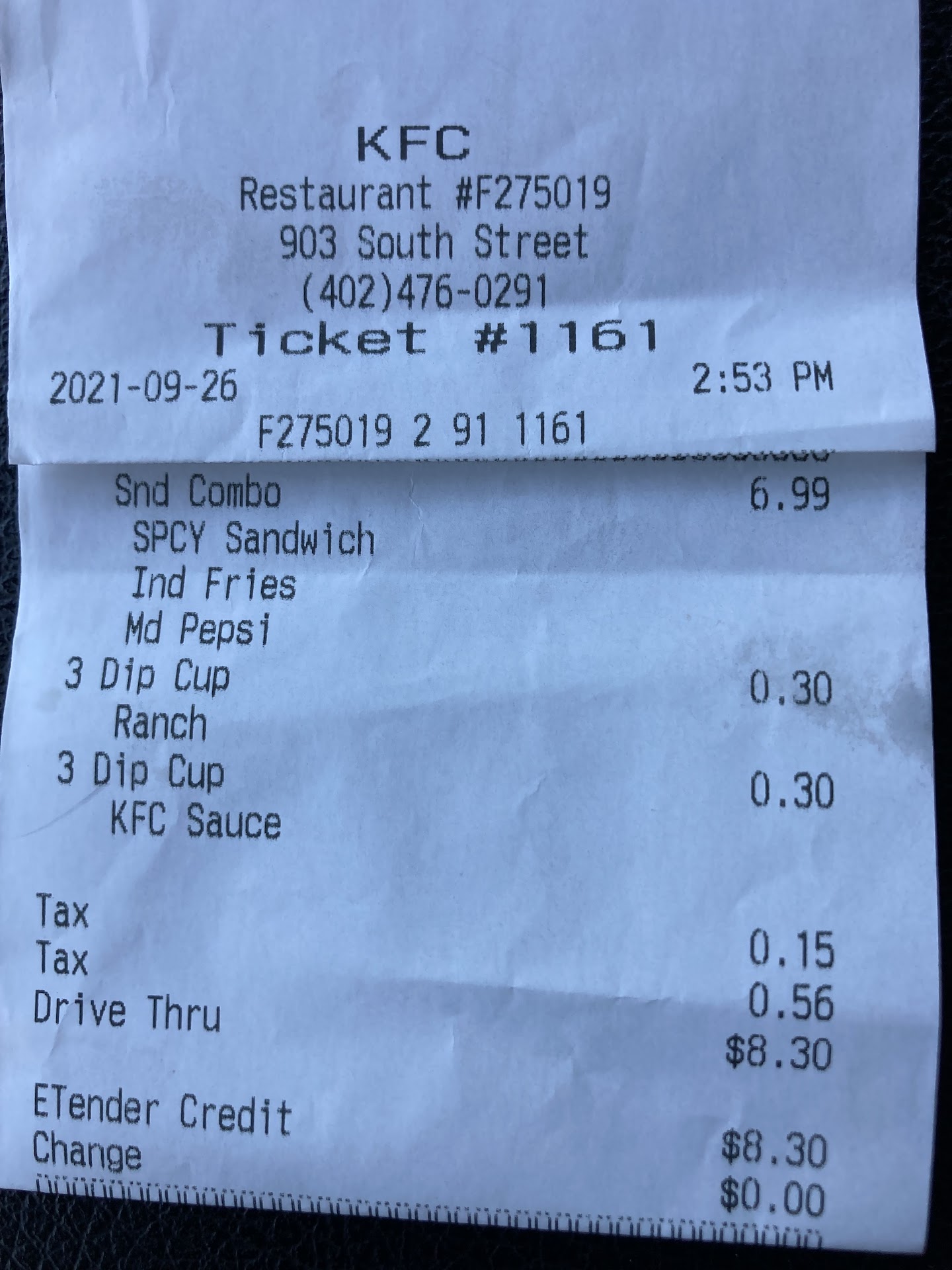 Read moreThe food at this location is perfectly satisfactory and a few of the employees are regularly very cordial, accommodating and helpful. I completed an online survey which this store promoted and the administering Burke, Inc. promptly sent me a nice plastic KFC gift card which I attempted to use on my next visit. It didn't require any validation and no instructions were given to do so. However, after around ten minutes at the pickup window with two employees (including one that was presumably a manager), they couldn't figure out how to honor a KFC gift card and I ended up paying full price for the meal and feeling like I had attempted to defraud them with their own gift card. I sent the card back to Burke, Inc. to inform them of the issue since the card appeared to be worthless. It's not a big deal, but the three KFC locations in Lincoln, NE aren't very convenient and Popeye's Chicken (also with limited locations) offers a similar enough menu with good service in my experience (even though it may be higher priced overall) that now leads me to them as my only local choice for chain-based fast food chicken. They also appear to be able to administer surveys...