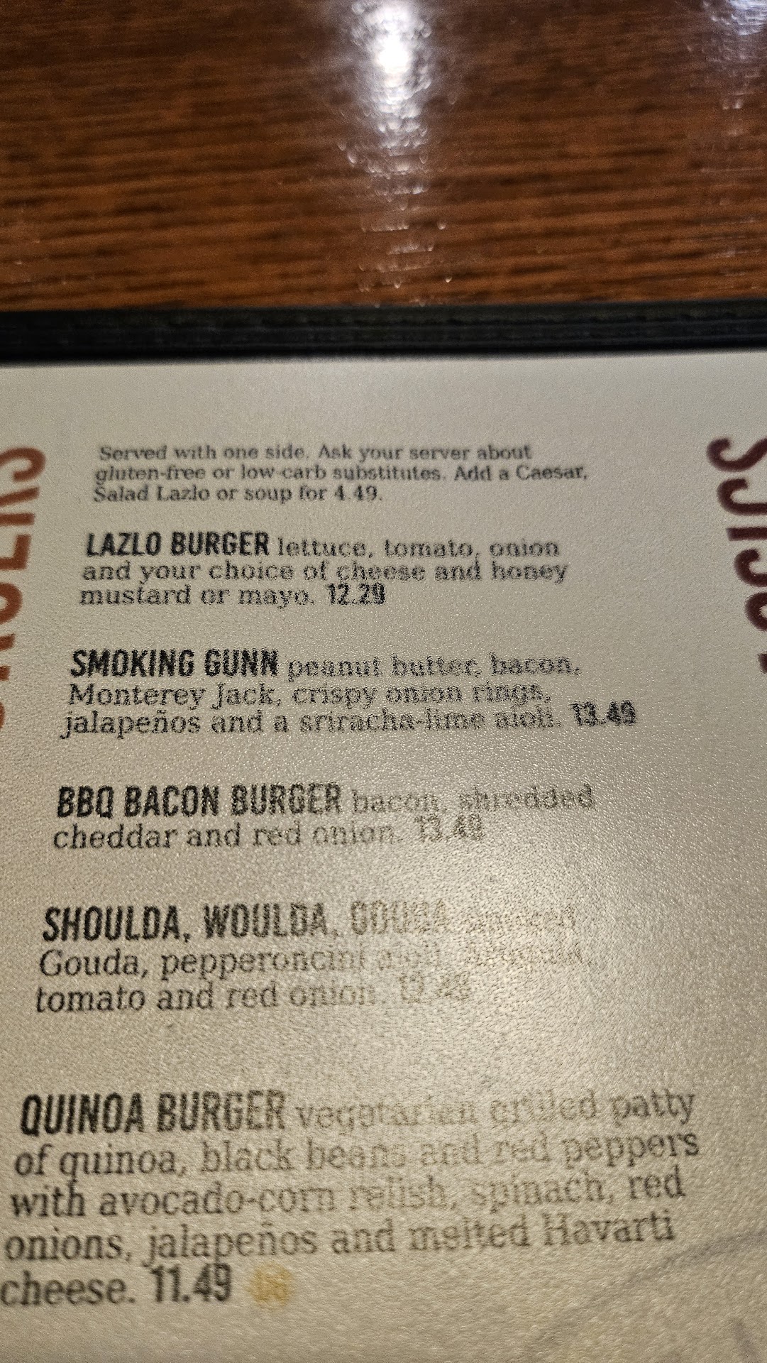 We’ve always had good service at Lazlo’s but that changed Friday night. We arrived shortly before 10:00 PM and the restaurant closes at 10:30. The manager/hostess was extremely friendly while seating us. We had a nice conversation about their gluten free menu as one of the members of our party has an extreme gluten allergy. The server came over, took our drink orders and asked if we were ready to order. to get our orders. We said we weren’t quite ready. She said “well the kitchen closes in 5 minutes but I’ll give you a couple more minutes.” She was very matter of fact and not friendly in the way she said it. She came back fairly quickly and we ordered. The food came out pretty quick. The gentleman that brought the food was very friendly and was joking around with us. We ate our food in a timely manner. The server brought our checks and cleared the table. We put our cards in the card holder almost immediately. She came back, ran our checks and brought the receipts back to sign. We all signed and she was right there almost immediately to pick up the signed copies at which time she pretty aggressively said “we are closing now so.” We hadn’t planned on staying and visiting anyway but felt like we had to immediately leave. The manager/host didn’t say anything about needing to hurry when she seated us. It really felt like the server just wanted to be done with us so she could leave. I get it was late but she was so aggressive about how she presented that the kitchen and restaurant were closing. She of course waited to tell us to leave until after we had signed our checks and tipped her. I looked at my watch when we left and it was 10:35. We will be back as we enjoy the food and the service is typical friendly. Maybe she was having a bad night but not the way to...