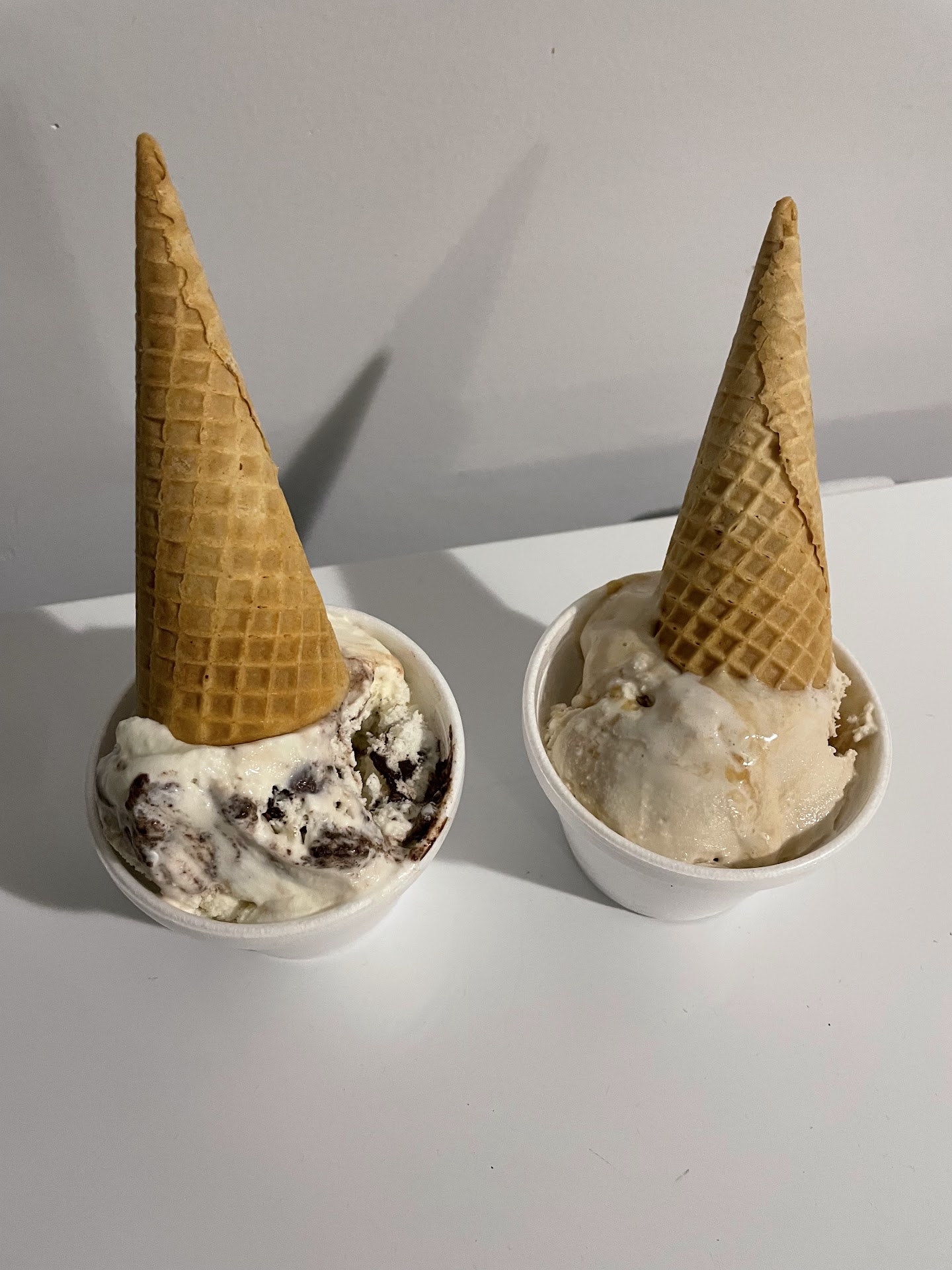 During this last visit I ordered a "small" - which is plenty for one or even two people. It's served in a cup with two scoops. You can choose different flavors (I went with caramel cookie dough peanut butter and coffee oreo) all for less than $4! The ice cream was DELICIOUS - creamy, and the flavors were definitely true to their description.