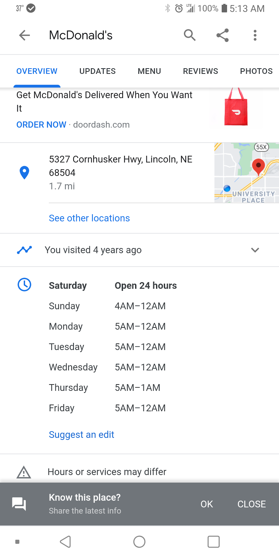 I know she was lying do to the fact that google has information that this location was open 24 hours on Saturday and other Mcdonalds were open across Lincoln.