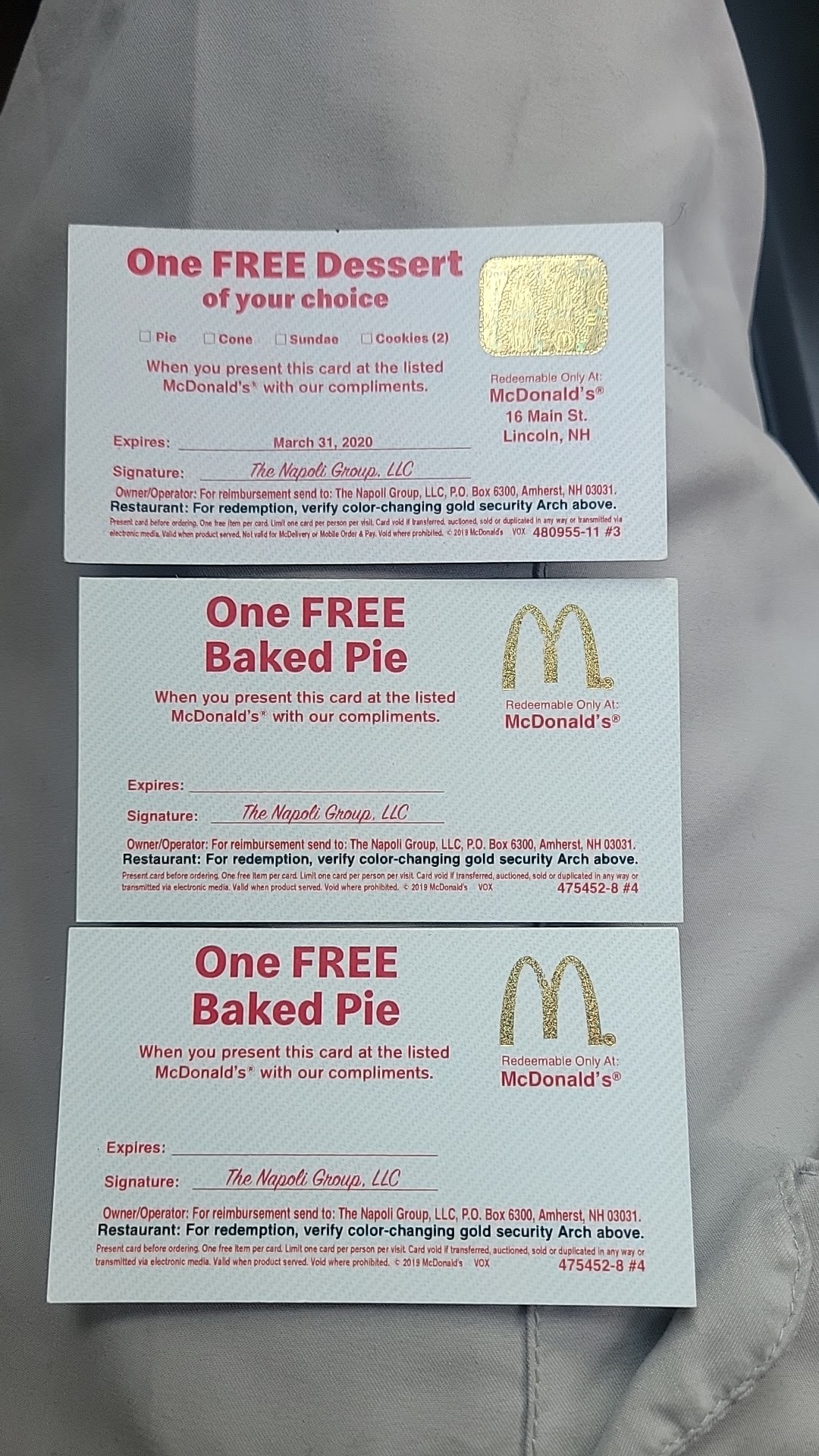 I only will rate the service because mcdonald's is mcdonald's nationally and I usually avoid rating the well know national food chains and services. That being stated this mcdonald's didn't deliver on that subject. I went through the drive thru and ordered the two cheeseburger meal medium fries, sprite light ice. Payed for the meal and went to the second window where my beverage was ready. I was ask to pull up to the parking spot #2, as they were still preparing my meal. I did so accordingly and waited. The person at window # 2 was wearing a black shirt and glasses with an excessive BMI. So I remembered that for some reason. As I waited time past and no one came out to bring me what I ordered. Ten minutes past. I decided to use my phone and call this mcdonald's directly. Phone line was busy. I tried multiple times in five minutes. I had to walk in. As I am at the counter no one approached me to ask, "how may I help you" . The staff looked at me several of them and they went back to work. Mind you as I waited outside multiple cars went through the drive thru and two car pulled up to me in spot number one and came and left after they were given their meals. The employee there were a pale blue grey shirt as their uniform. I yelled at two of them and asked to see the manager. They looked at me clueless. Asking what? I've explained it twice. I waited some more and like three minutes cause there were some two groups who had used the kiosk. I demanded to see a manager in my NYC tone. And finally the manager comes...would you believe it was the same guy who told me to pull up to spot number two. I had to repeat the situation of not getting my meal. I think he remembered that he had forgotten about me. Failed to complete a process so much I got large fries and and some coupons for free baked pies. Coupons are from the Napoli Group. LLC. The thing is that I probably won't be able to use them cause I don't live in the local area and just passing through. This mcdonald's should look at how they service their customers. Or perhaps they have and don't care because of their prime location make their arches...