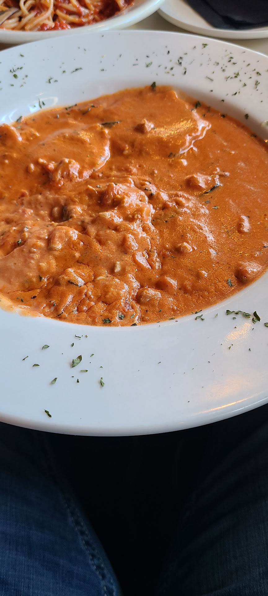 Read moreNapoli's is pleasant and has done a fair job converting a BBQ space into an Italian restaurant. The decor was appropriate and the music was both light and properly Italian sounding. There were a wide variety of dishes from baked pastas, to inexpensive sauced pastas, to high end seafood and steak dishes, along with an assortment of pizzas. Flavor wise, it was pretty conservative. I had to ask my guest if my taste buds were off because I wasn't getting any zing or intense flavors, but they agreed. It is a safe palate and has room to expand on bringing out each dish's signature flavor. The menu didn't mention the fact that bread and a side salad or soup was included with our pasta so we ordered mozzarella sticks to start, which ended up being quite a bit of food by the end of the meal. If I had to ask for one area to be improved upon, it would be to train the staff more. They were very pleasant and strove for proper etiquette, but missed on a few of the basics. Neither my soup, nor my pasta came with a spoon and I had to ask for one twice. Both times the spoon was brought out on a plate and I felt a bit guilty dirtying an extra dish just for a spoon. Also a server asked to borrow our parmesan cheese to refill it at 7 p.m. before our meal had arrived and never returned it for our food. I took one from another table which made it through the dinner, but then they came and asked to take that one as well when we were ready to pay. Generally you'd wait until the customer is done to take their seasonings for side work. Lastly, my water glass sat empty for about 5 minutes and I had to request that it be filled. All of that is easy enough to fix and the waiter's politeness made up for it. We'll be coming back in a couple months again to hopefully see the...