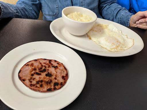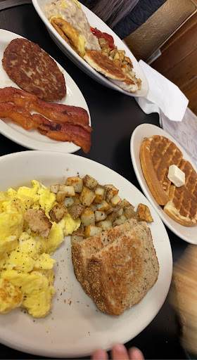 Went to late breakfast with a friend. The waitress was friendly and attentive. Good decaf coffee and topped off often. I built my own omelet with spinach mushrooms and sausage. Would have liked cheese but they only have American. Came with toast and home fries or grits. Grits were very buttery. Everything was cooked well but I had to add my own salt and pepper. On the way out we saw the specials and were disappointed because there were a couple we would...