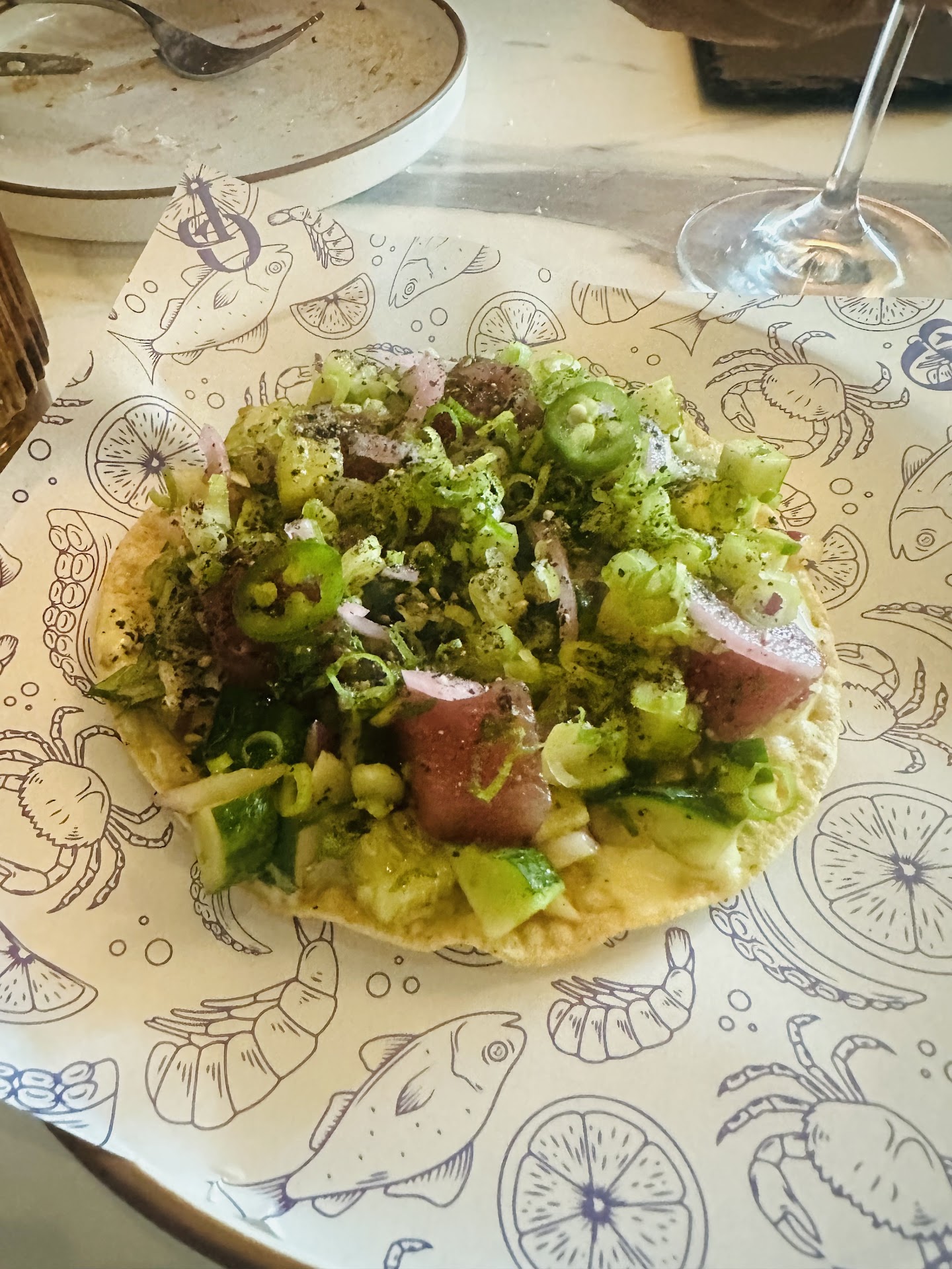 With a menu that leans into local, seasonal ingredients, Chef Jeana showcases her roots in Mexican cuisine. Every ingredient here serves a thoughtful function, has a role to play for each dish. From the delicate house ponzu that accompanied a bright and flavorful crab hand roll, to the perfectly fried sturgeon skin chicharron on which was served a delightful caviar.