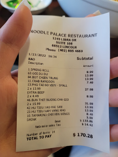 Read moreI went with a friend/co-worker during lunch on a Thursday morning (1130 ish'). All I can say is that if you're looking for good quality Pho with good cuts of beef accompanied by excellent broth, fresh vegetables, and rice noodles in SW Lincoln, look no further than Pho 14. Man, I was a little disappointed by the availability of diverse restaurants upon moving to Lincoln, NE (I love Korean food but there's only one full-fledged Korean restaurant, Yami, in Lincoln). However, this place fulfills my Vietnamese Pho noodle craving to the T. Having come from the west coast I compare Vietnamese restaurants to a place in Las Vegas called: Pho Kim Long. Since that place is the standard, for me, I would say that this place here in Lincoln, Nebraska comes very close to the mark. They have weird hours and are in the SW corner of Lincoln but you won't be disappointed. I might even take the wifey there tomorrow; just thinking about it makes me hungry. ...