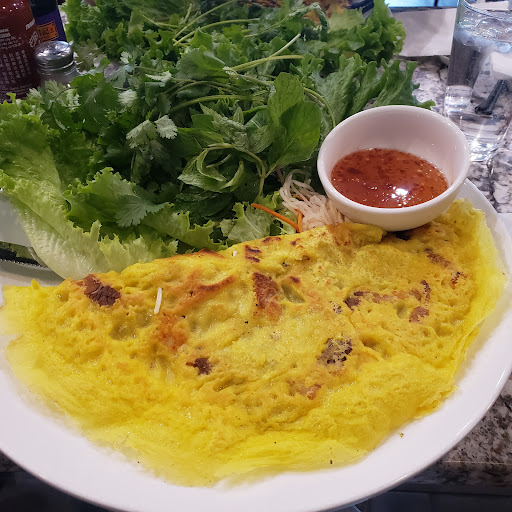 Read moreIt's not often that I find Banh Xeo on a menu, so when I do, I have to indulge as it's one of my favorites. While no one can make them as good as my Mom, the ones at Pho Factory don't disappoint and are worth the long commute for me to enjoy them a few times a year. If you're in a hurry, don't order this- on the menu it's called King Crepes. It takes time to make but it's totally worth the wait! The banh xeo is delicious and huge and comes on a platter loaded with tons of fresh greens, and fish sauce. The pictures never quite convey the true size of these but that's not a normal dinner plate. It's a big platter.