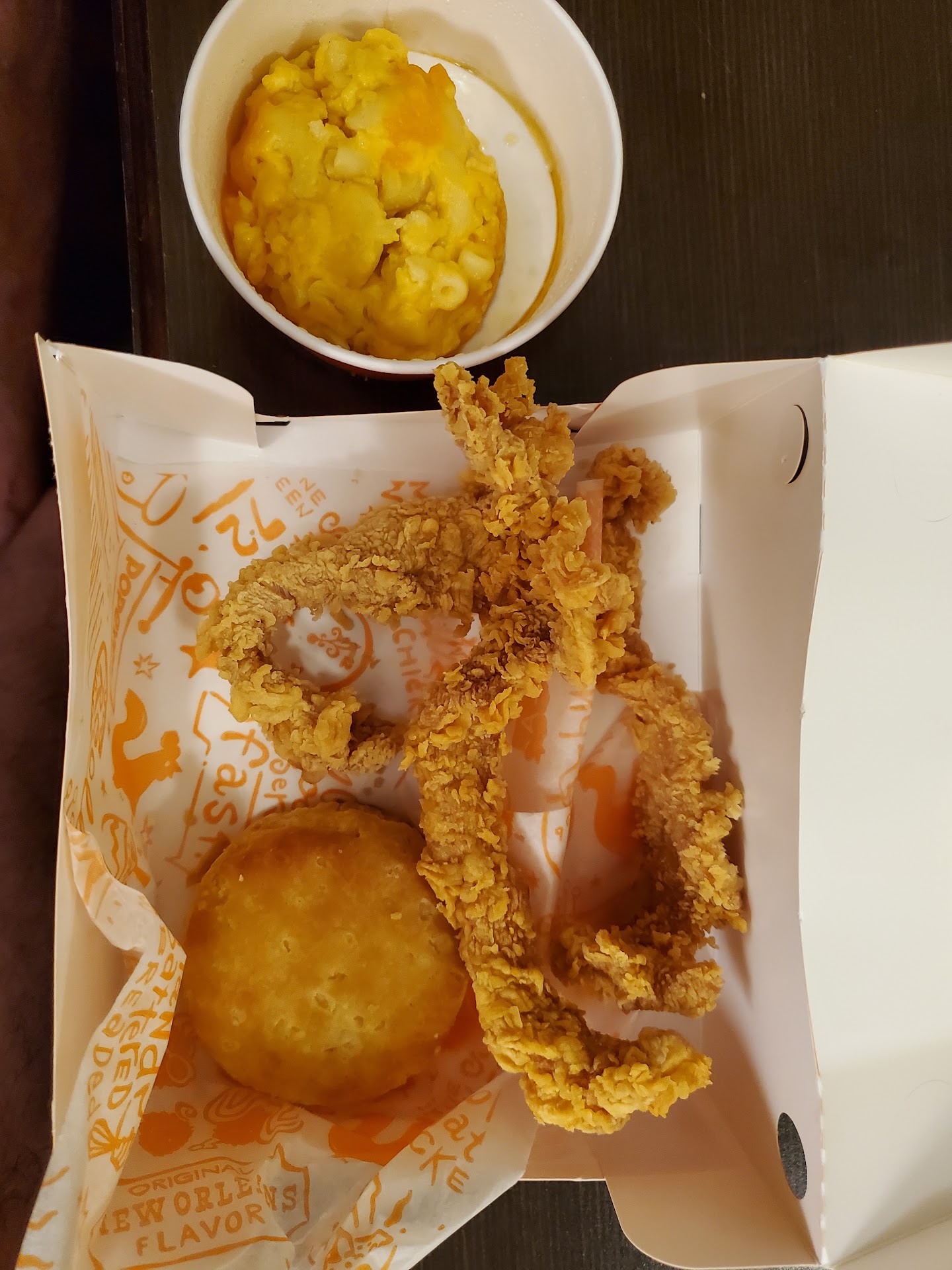 Read moreI'm not sure why we keep giving them chances. My Mac and cheese was a coagulated blotch of cheese like some microwaved an old cup and dumped it into a newer cup. And I have one Beignets coated in sugar and two naked ones. My husband's fries tasted like they'd been sitting awhile, he said chicken strips were ok though. We've had worse encounters with this place. It's not just the fast food employee shortage either, these guys have been messing up orders way before Covid. But they're nearby, we like Popeye's Chicken, and somehow keep convincing ourselves... Maybe it'll be better this time.