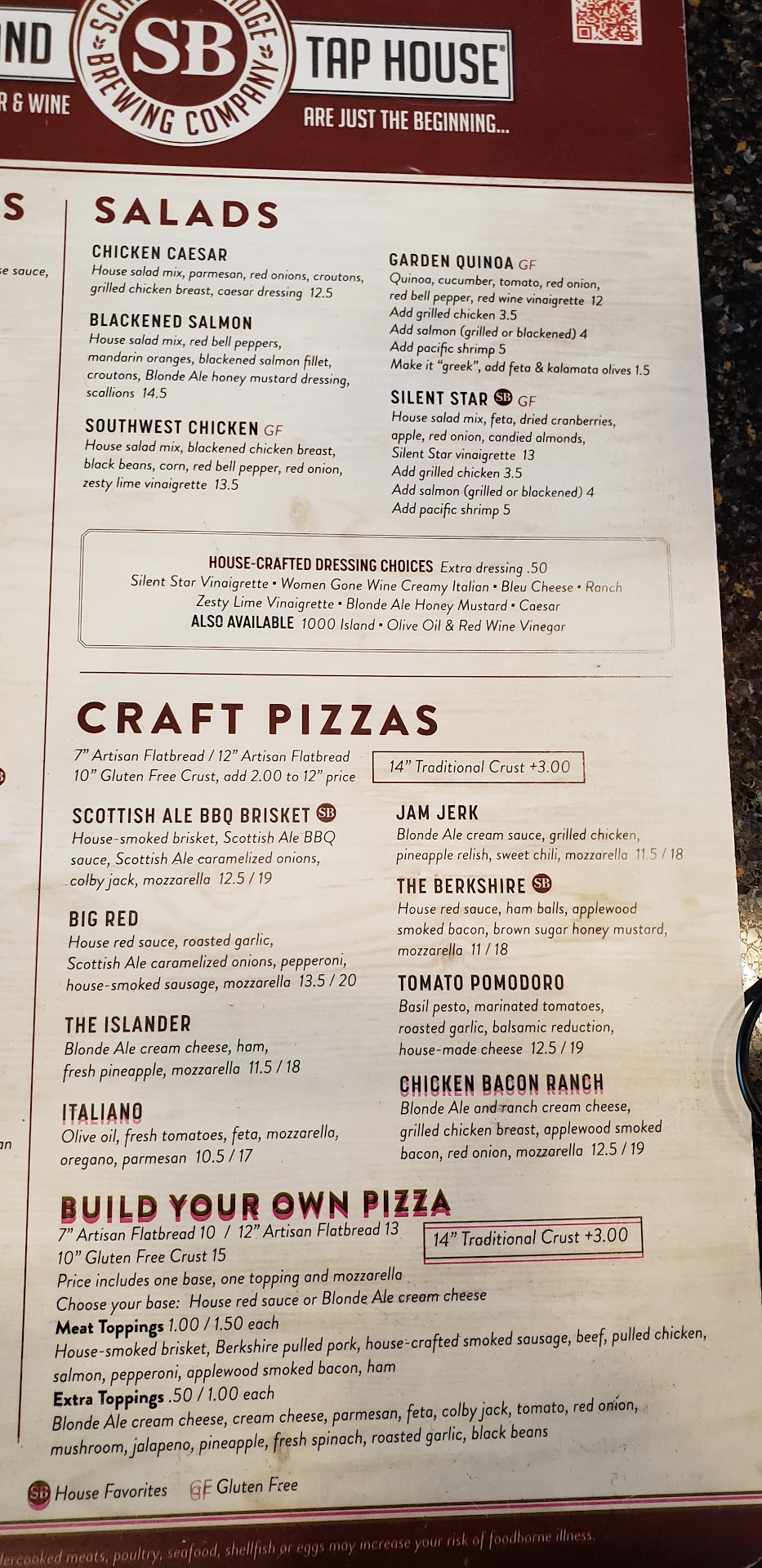 Tucked away in the fairly new neighborhood of Fallbrook is a truly remarkable dining destination. SchillingBridge brews their own beers, fragments their own wines and makes petty much every menu item from scratch. The atmosphere is intimate without being pretentious, and the prices are just right. My wife and I visited on a special night for us and our sever went above and beyond to make it special. Andy was very prompt and attentive without ever hovering over us, and shedida good job of discussing themenu without pushing for an upsell. We tried a flight of their beers and a flight of there wines and were delighted by both. For dinner we had the western burger and the 10oz sirloin. The flavors on the burger melded perfectly to make one of the best burgers I've ever had. The steak was cooked perfectly to order and paired with a mouthwatering compound butter made in house. This sirloin was better than any I've had before, and that includes theones on my father's castle ranch. We finished our evening we their bread pudding and were delighted to learn that everything from the bread to the caramel sauce is made in house. This was a uniquely decadent dessert and left us eager to return to what has already become "our...