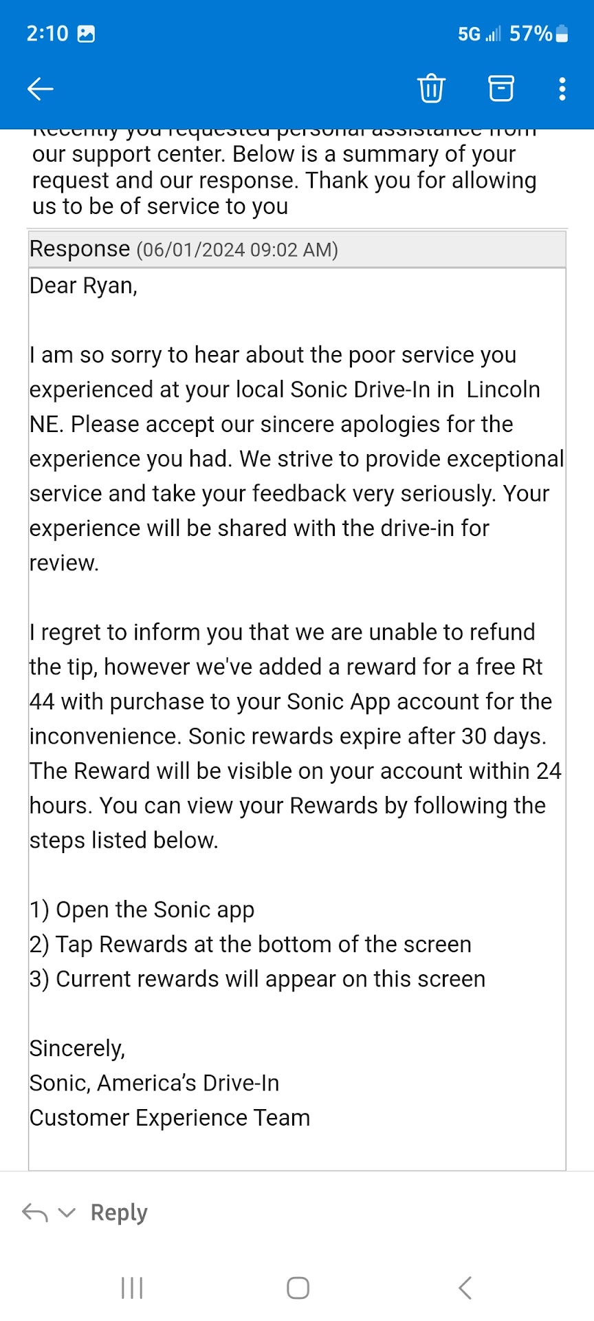 First I want to explain why I gave a higher rating before. The last 6 years I've spent on the road enjoying Sonic at least once a week in many states and locations with flawless quality and service. Some of those locations I was able to visit repeatedly and I felt some brand loyalty, so I split the difference on my rating.