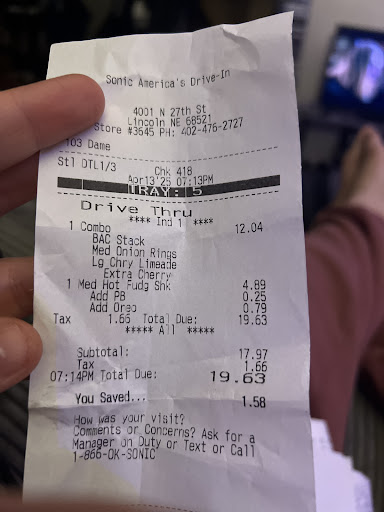 Read moreIt's unfortunate I have to leave such a poor score. We LOVE Sonic. But THIS location on 27th in Lincoln has just steadily declined in their food and service. My husband used the app to place our order. We arrive about 10 minutes later. Then we WAIT and WAIT and WAIT, I kid you not, for ALMOST AN HOUR!!! THREE ORDERS. EASY ORDERS: three frankfurter combos, an extra chili cheese tot and cheddar poppers. That's it. Meanwhile cars are coming and going and we're STILL HERE. I finally just called a carhop over and asked her to check on our order. She comes back with an order about 5 minutes later. We ALMOST drove away, but it seemed like a light order. We check it: It's INCOMPLETE. My husband buzzes them and tells them we're missing TWO large tots. They bring them out in less than 3 minutes. SIGH. Needless to say: we are NOT coming to THIS Sonic again. We'll make the drive OUT OF OUR WAY, to the one on 84th and Holdrege - they ALWAYS SATISFY, in both food and service. I hope they get their act together. Nothing personal against the people working there. Management is RESPONSIBLE for making sure ALL is up to HIGH Standards. I hope they do BETTER. WE will never know because we'll NOT be coming back here. But, still, you want to wish people the best, especially in times like this: I want you...