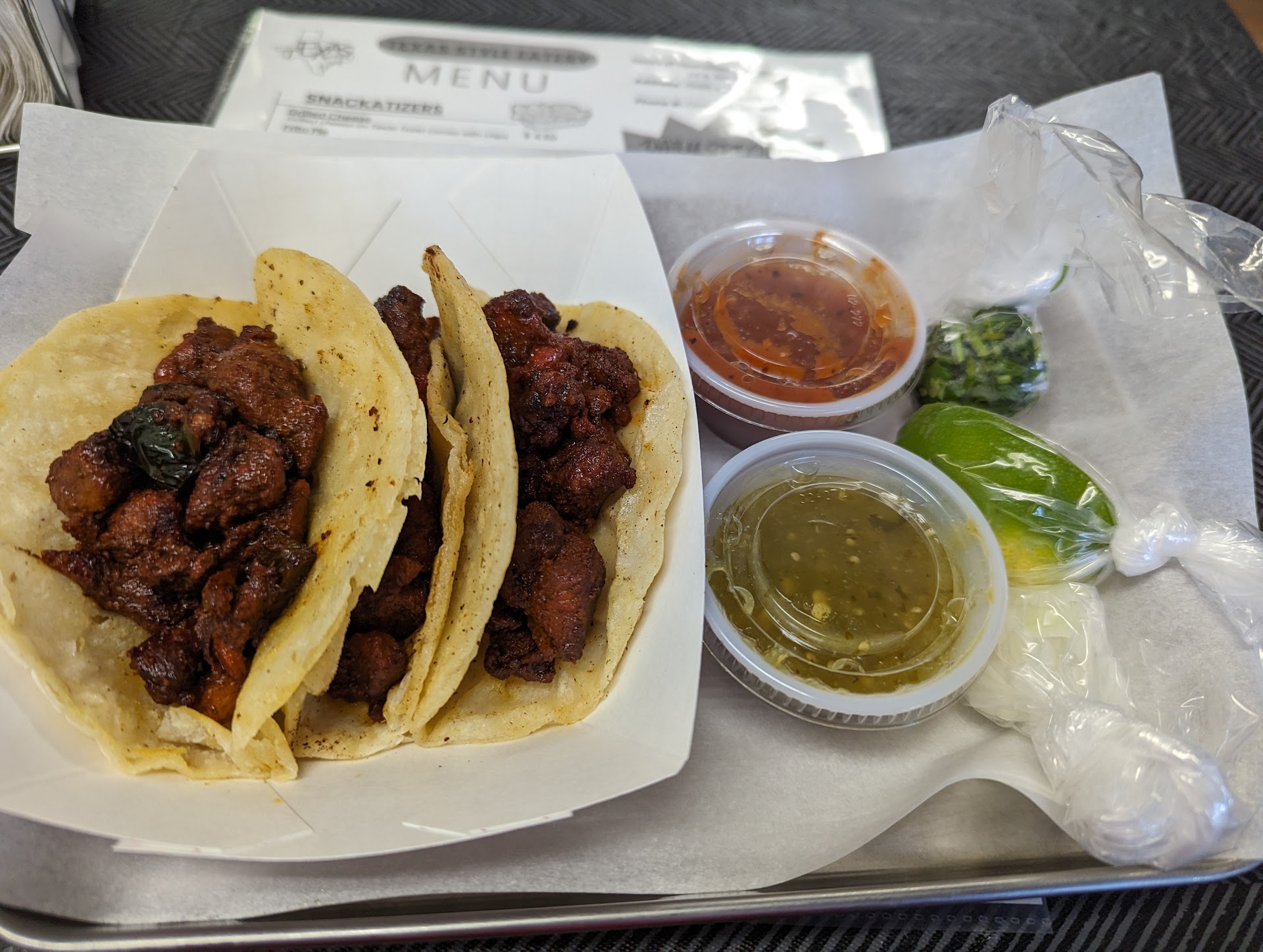 Discovered this little gem right in our backyard. You can tell the owners take pride in this business. Nice clean place. It even has a cozy eat in area inside. The menu has a nice little variety and the food is excellent. Unexpected items on the menu like Tamales and Fritos pie. It does truly remind me of some of the great eating shacks you find in Texas. We had the street corn, tamales, chili burger, protein potato (with steak), and sloppy Joe. All were great! We look forward to going back and trying...