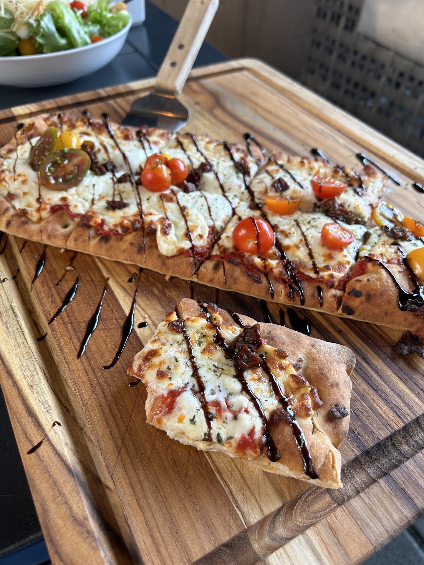 What a cool ambiance! We popped in casually while out shopping and are very glad we did. The staff was super friendly and the food was great and well priced. We had the personal charcuterie, salad and 2 flat breads. Everything tasted great! Special shout out to the Margherita flatbread flavors! Not your typical Margherita pizza and I am NOT mad about that! Lots of seating and ideal for a group of friends or even a family. Dont sleep on this...