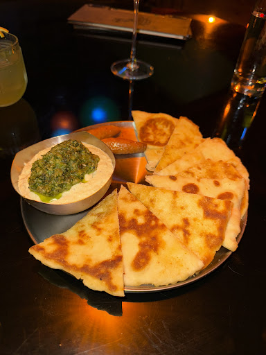 We enjoyed our drinks - one with pandan that hits you right at the end and a gin-based drink that incorporates matcha. Both were refreshing, smooth, and helped balance the small plates we got. The homemade hummus was fantastic, and I enjoyed the layer of flavor the preserved lemon provides. Our burger was filling, had great flavor. It's topped minimally with cheese and pickles, so the taste of the beef really shines. The crispy potatoes were indeed CRISPY and had a great aioli on the side - wish we...